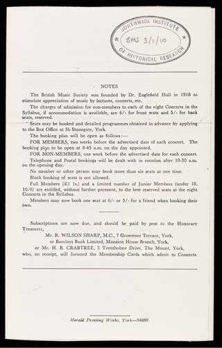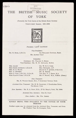 (Formerly the York Centre of the British Music Society)