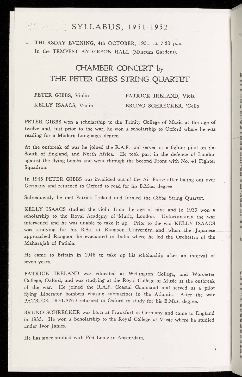 Subsequently he met Patrick Ireland and formed the Gibbs String Quartet.