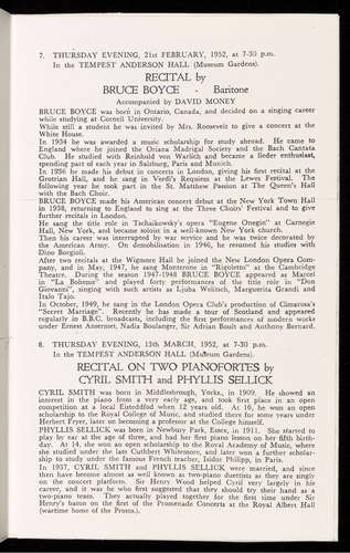 Seats may be booked and detailed programmes obtained in advance by applying