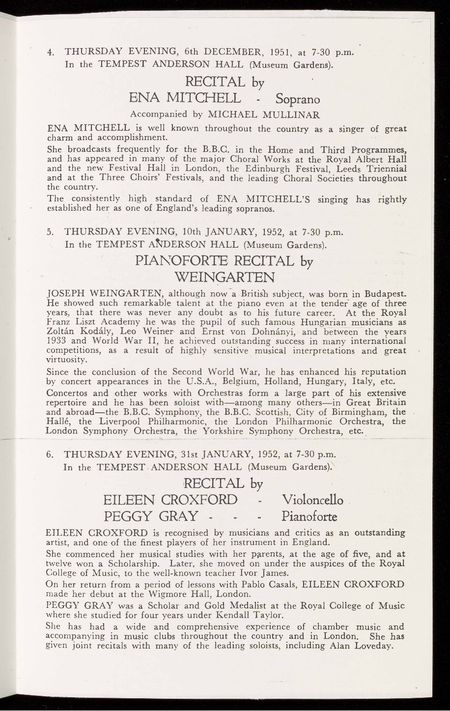 5. THURSDAY EVENING, 10th JANUARY, 1952, at 7-30 p.m.