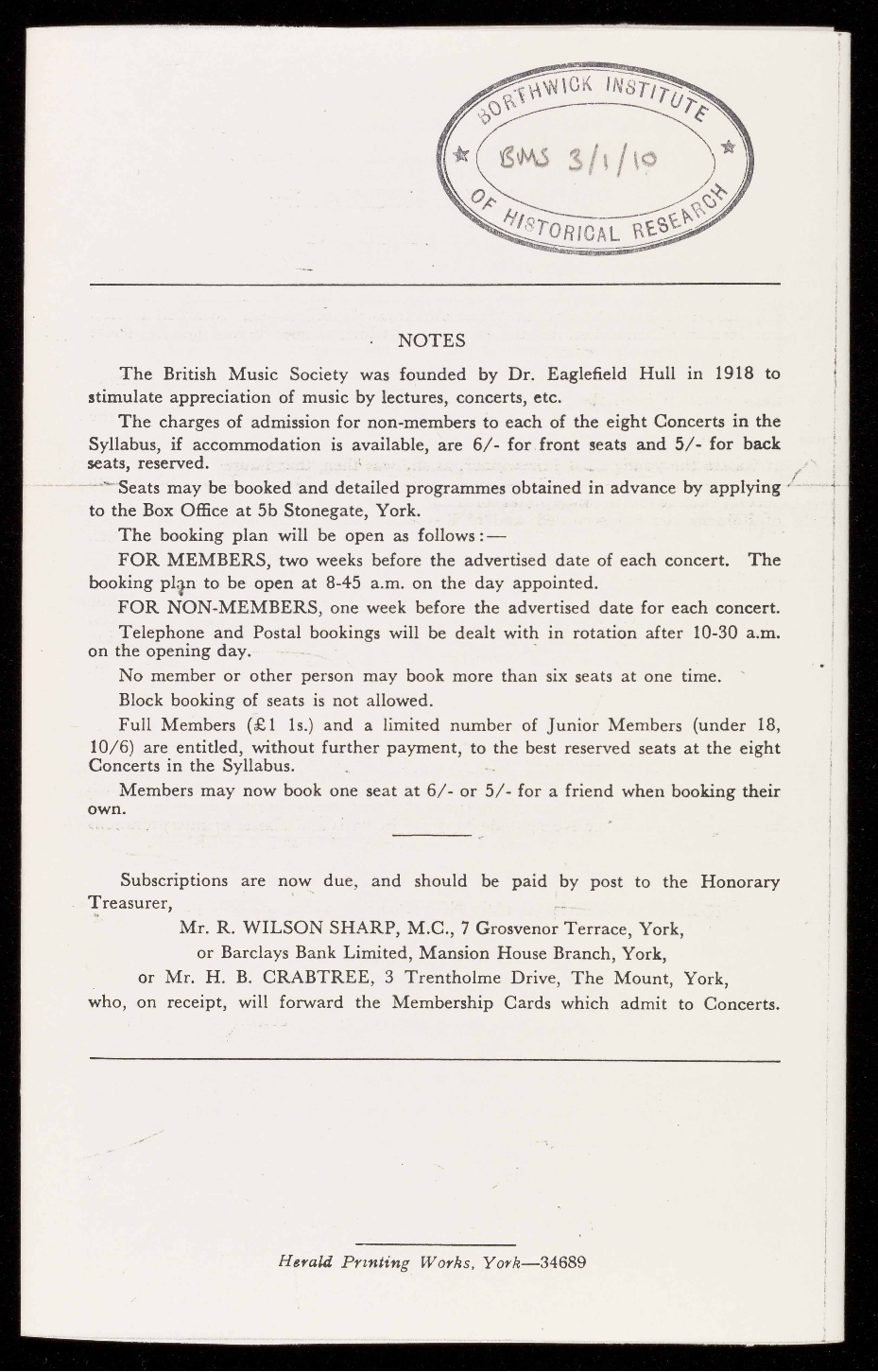or Mr. H. B. CRABTREE, 3 Trentholme Drive, The Mount, York,