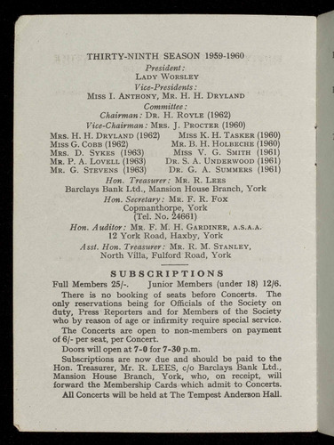 forward the Membership Cards which admit to Concerts.