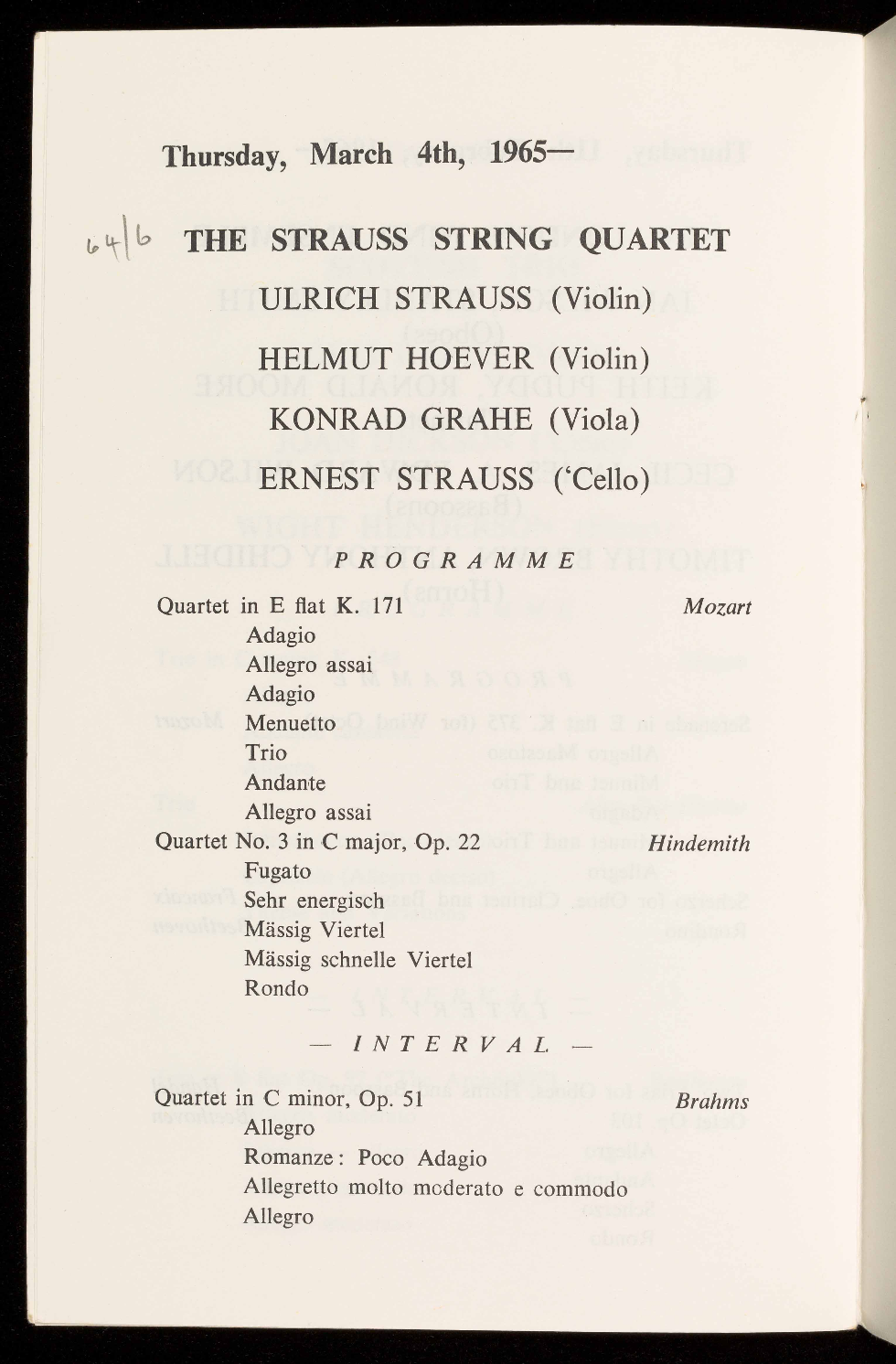 64/6 THE STRAUSS STRING QUARTET