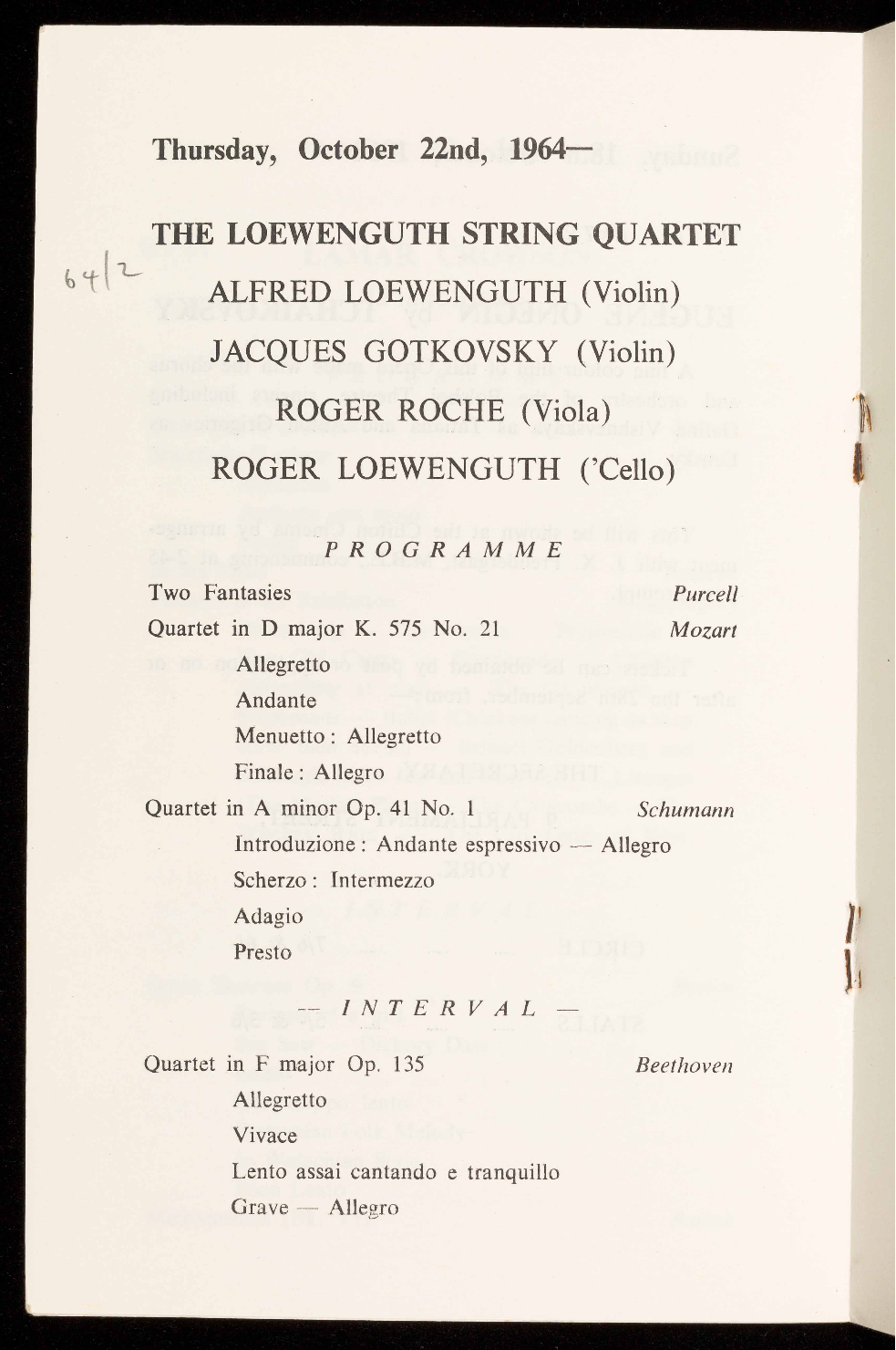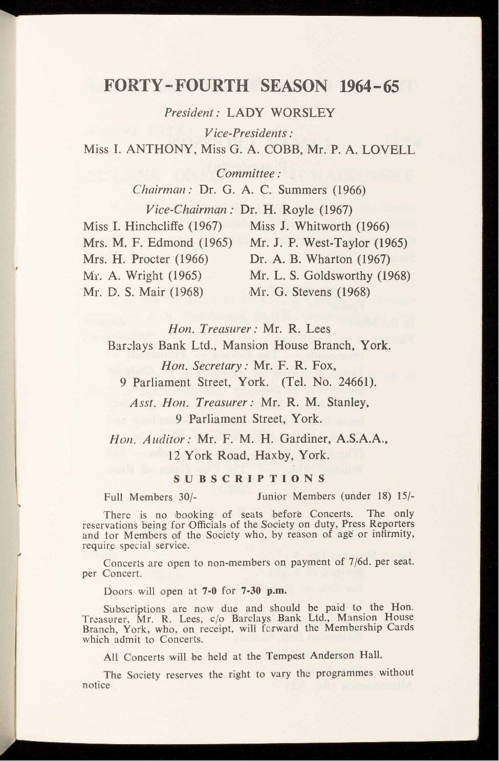 Concerts are open to non-members on payment of 7/6d. per seat.