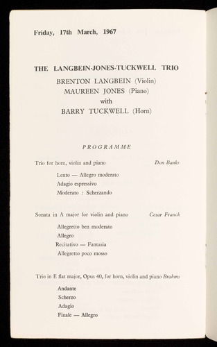 Trio in E flat major, Opus 40, for horn, violin and piano Brahms