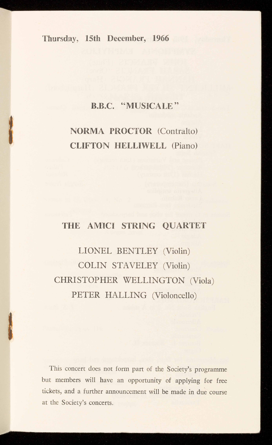 This concert does not form part of the Society's programme