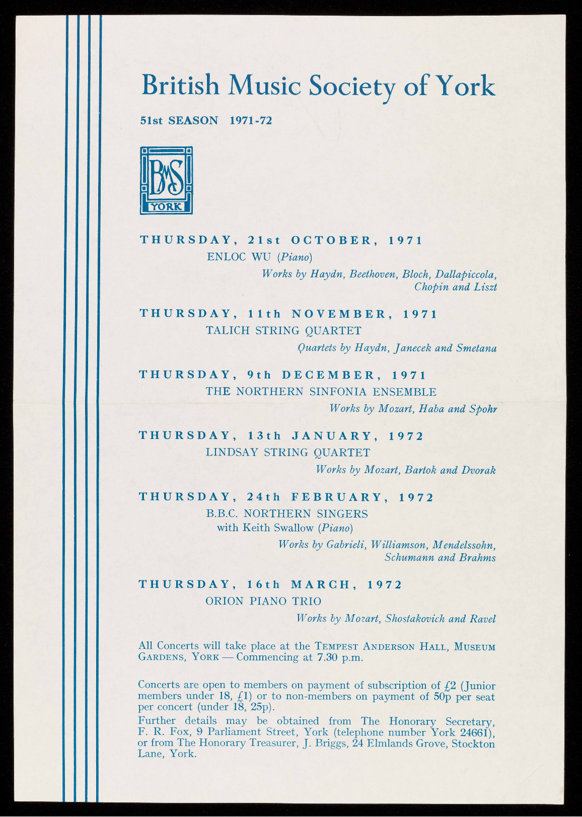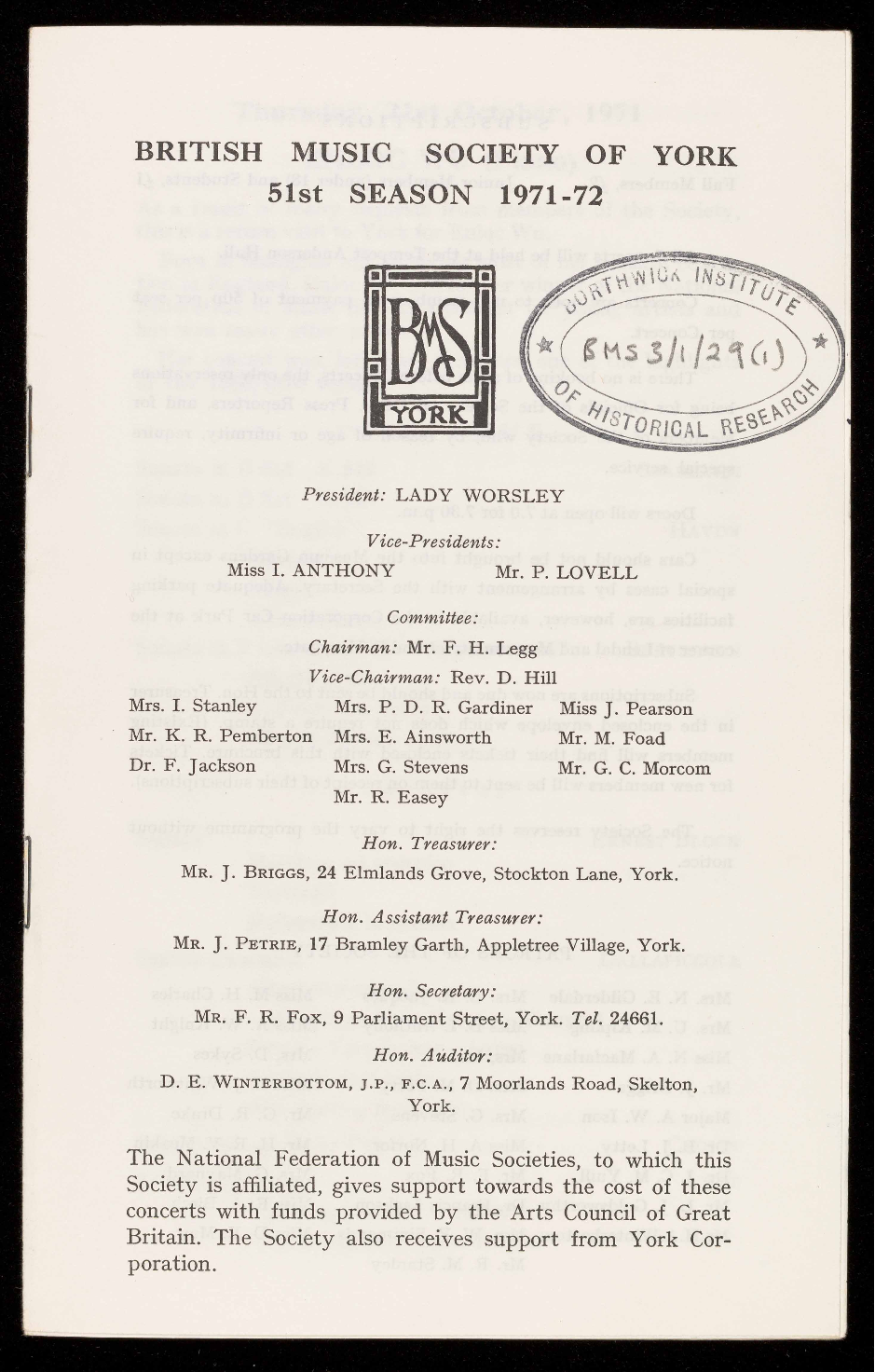 or from The Honorary Treasurer, J. Briggs, 24 Elmlands Grove, Stockton