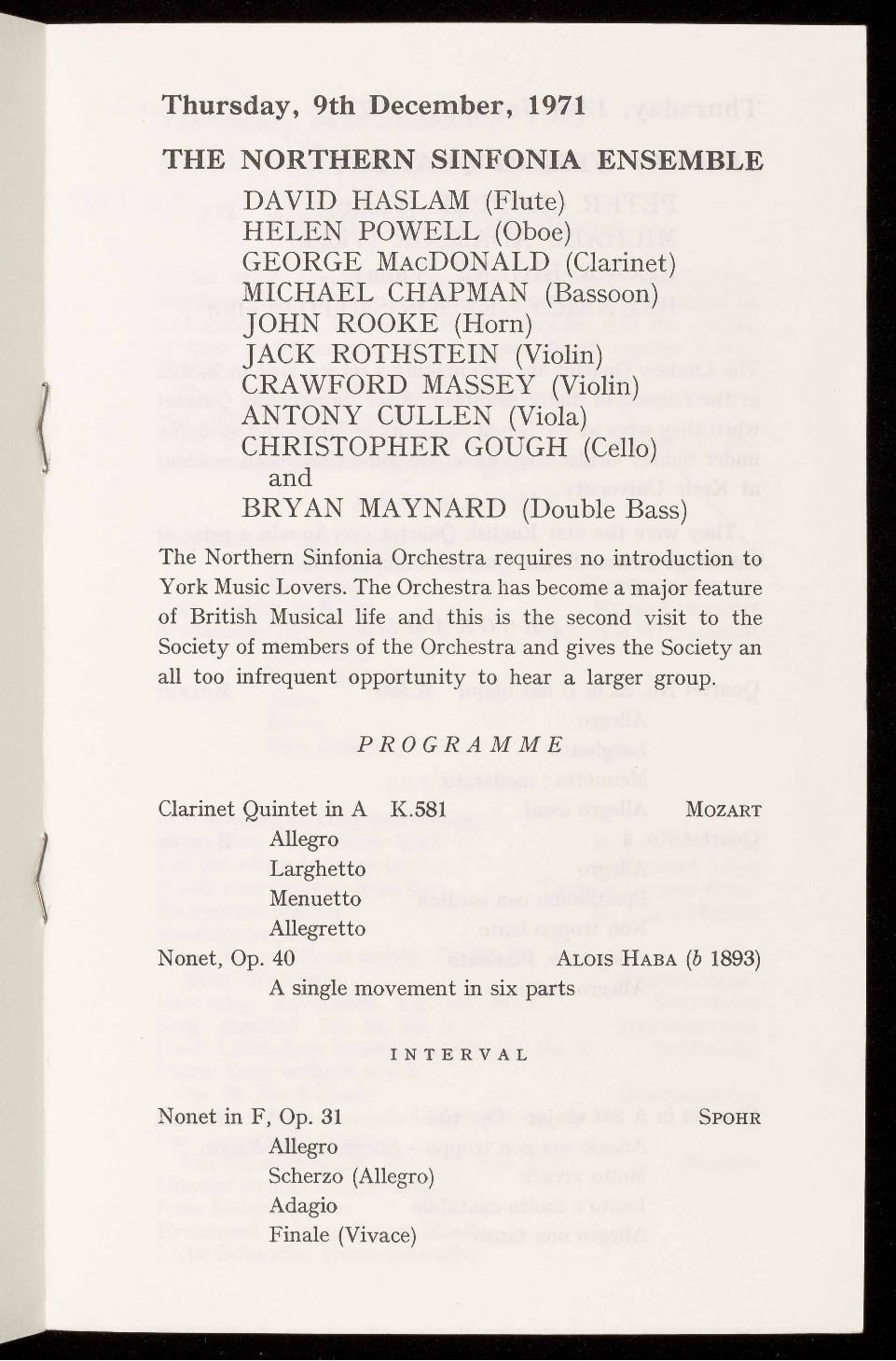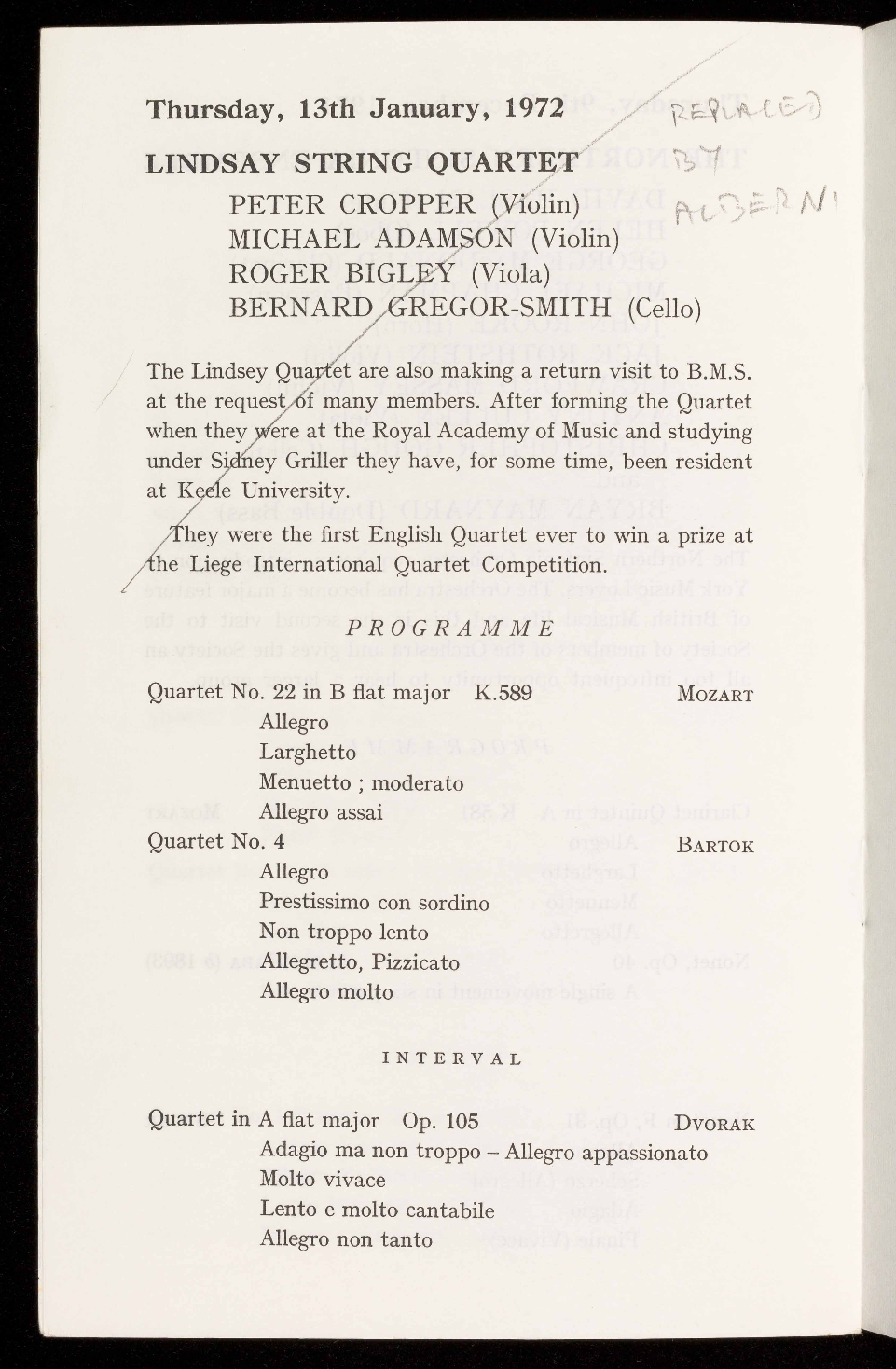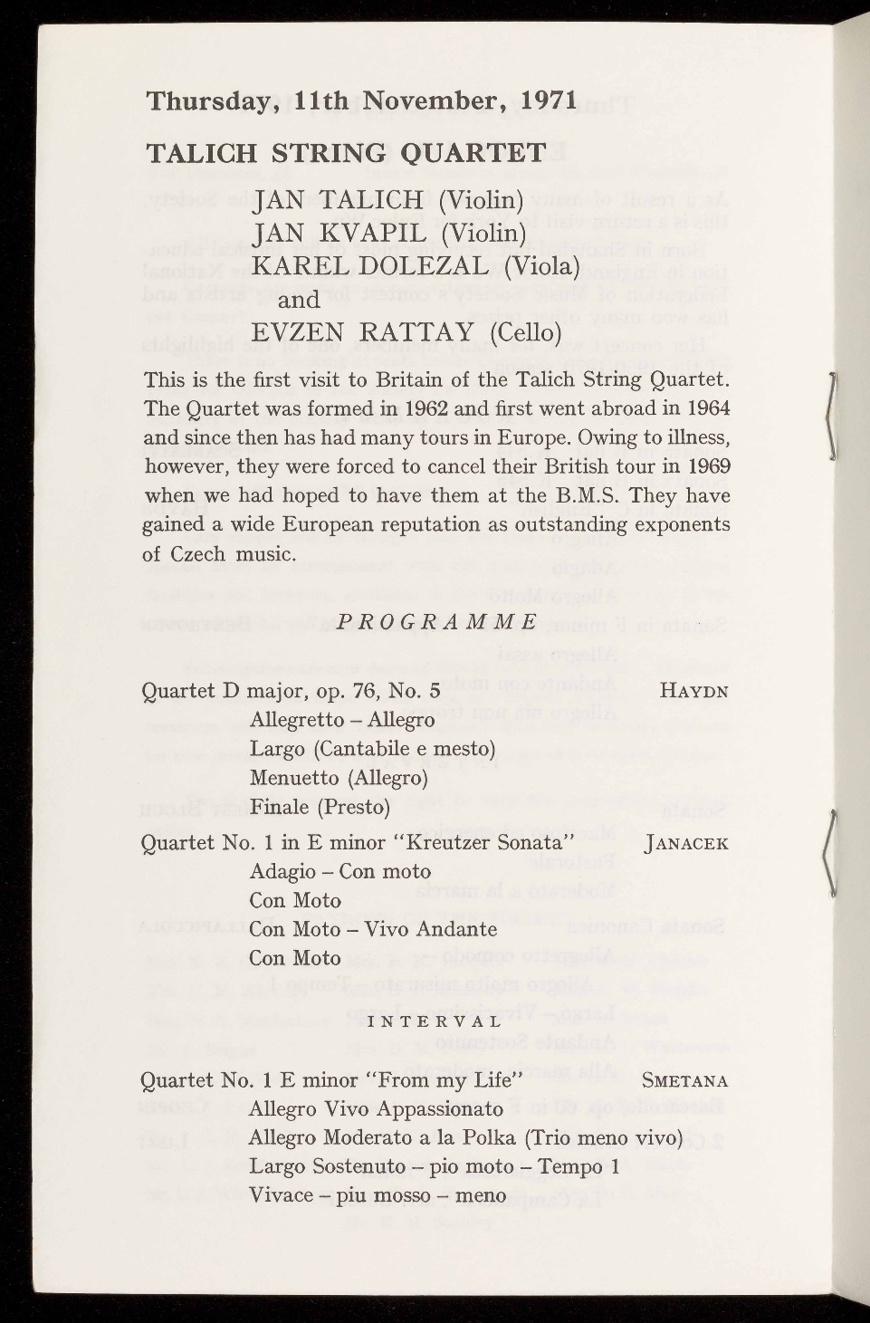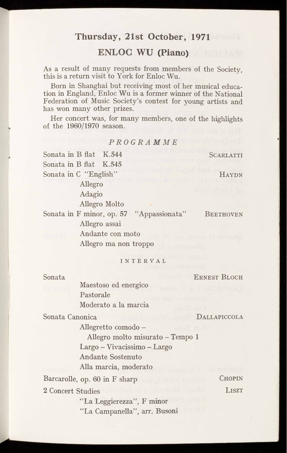 Works by Haydn, Beethoven, Bloch, Dallapiccola,