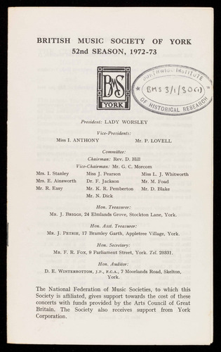BRITISH MUSIC SOCIETY OF YORK
