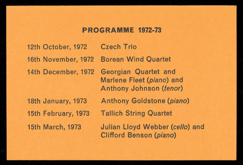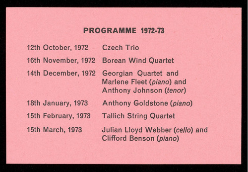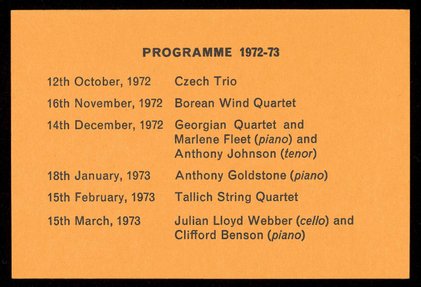 Concerts are open to non-members on payment of 50p per seat