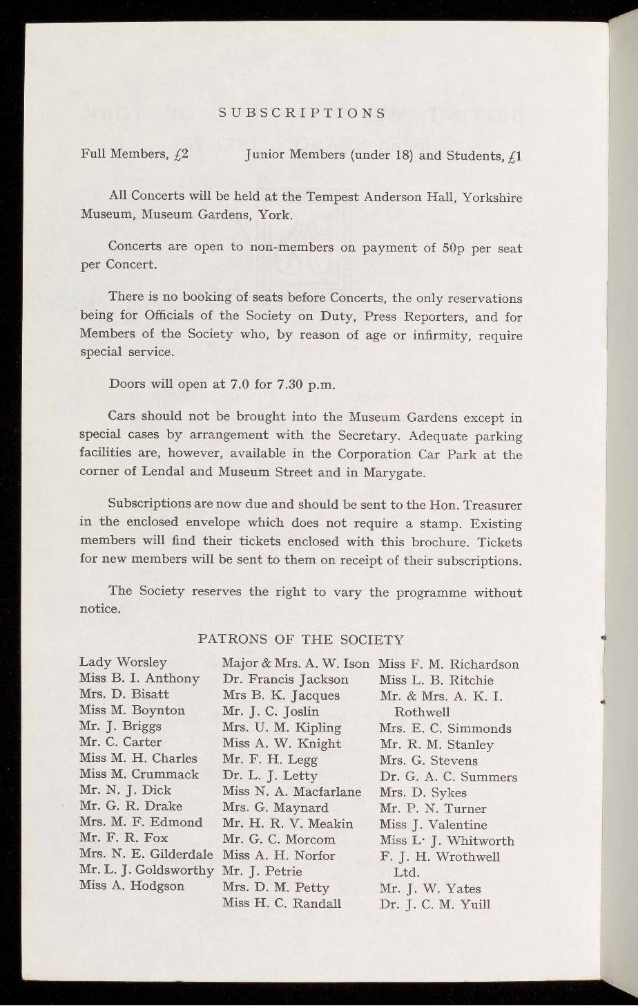The Society reserves the right to vary the programme without