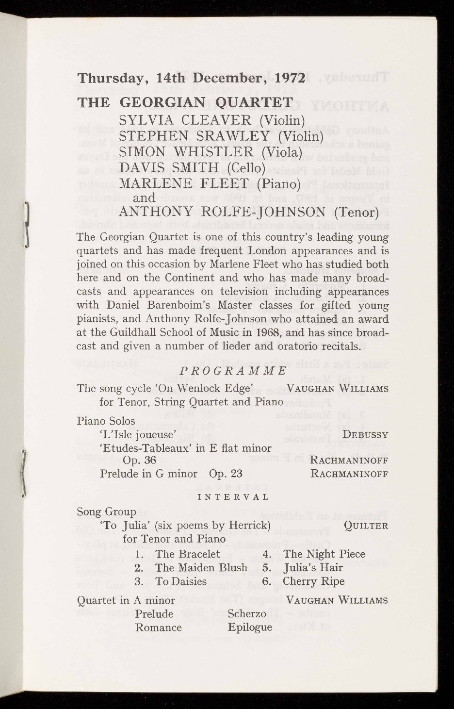 Members of the Society will recall the Quartet's highly success-
