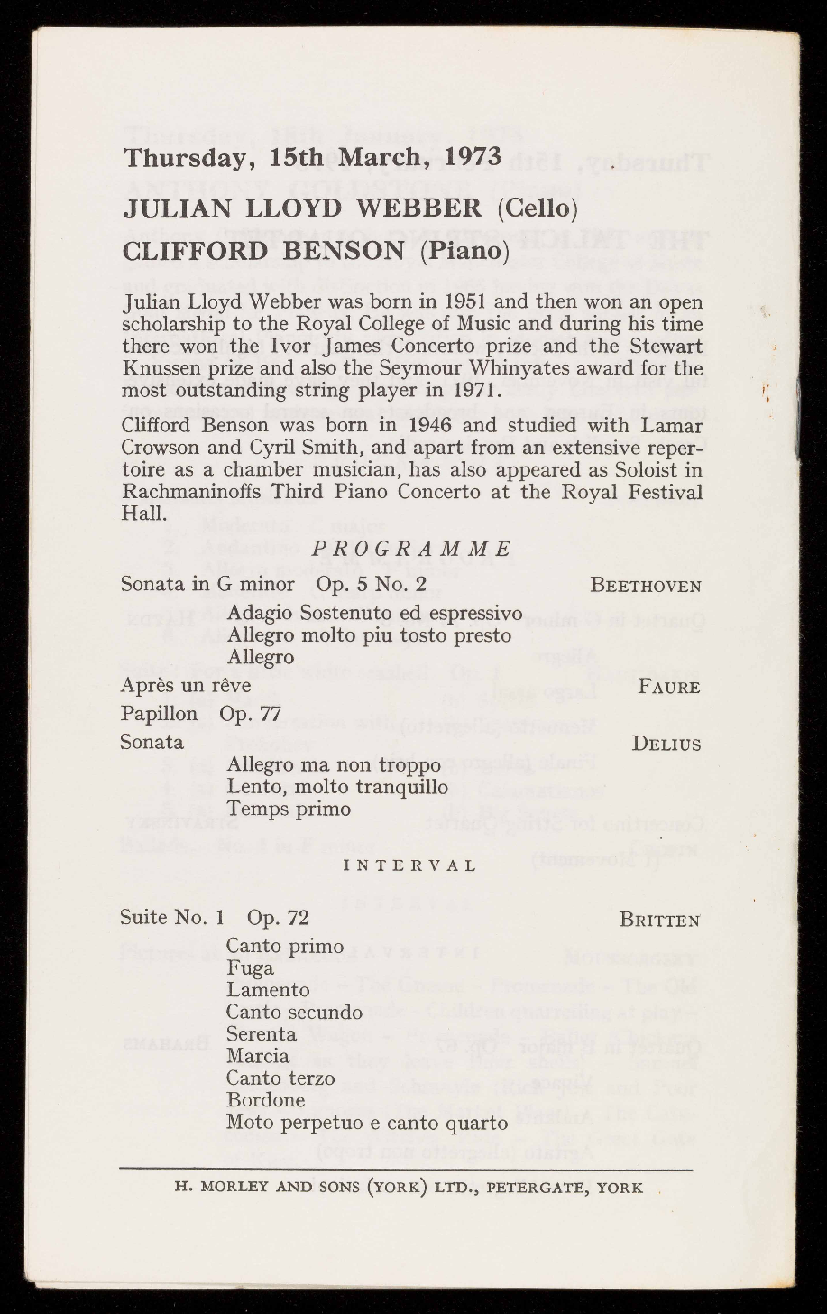 Julian Lloyd Webber (cello) and