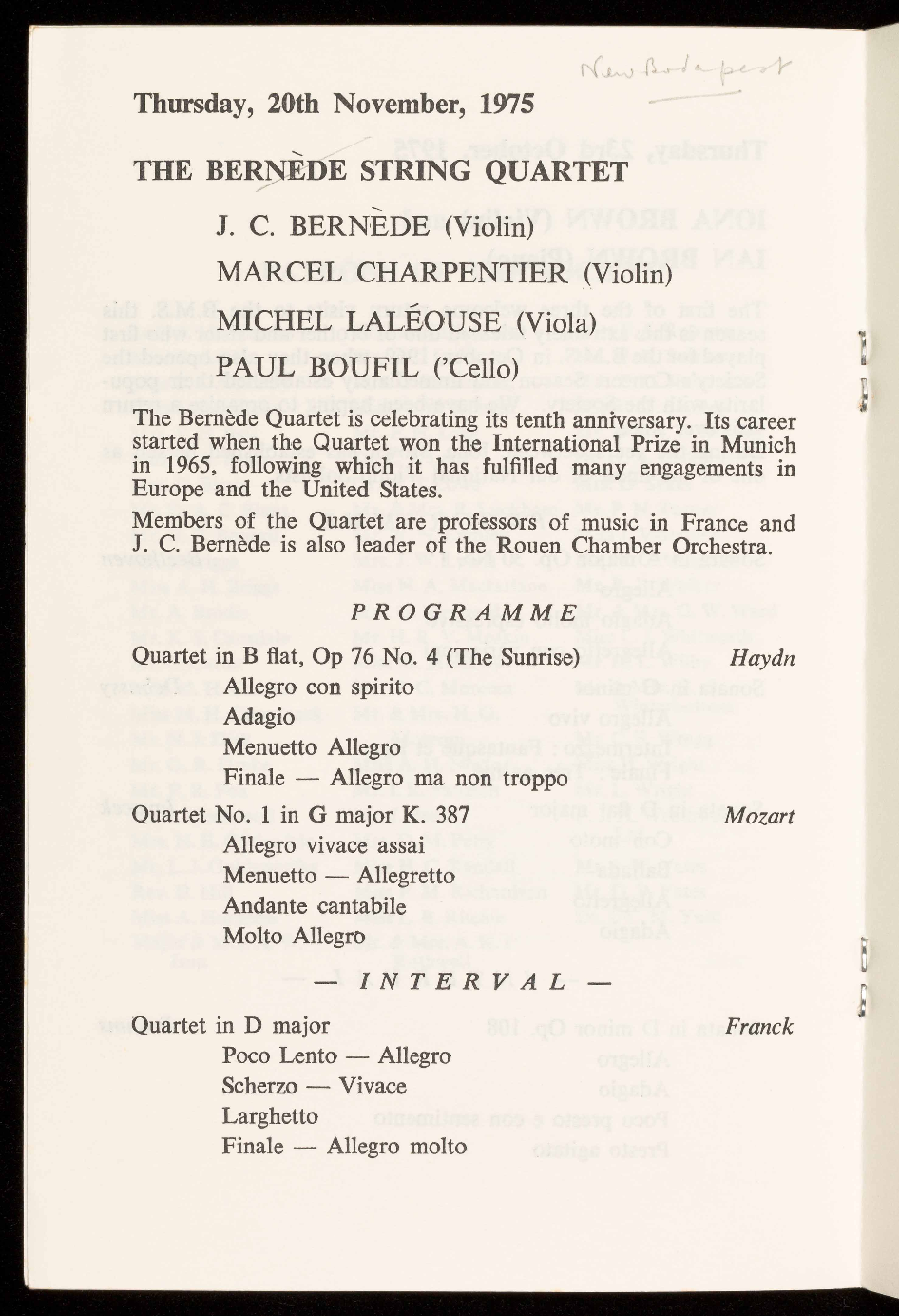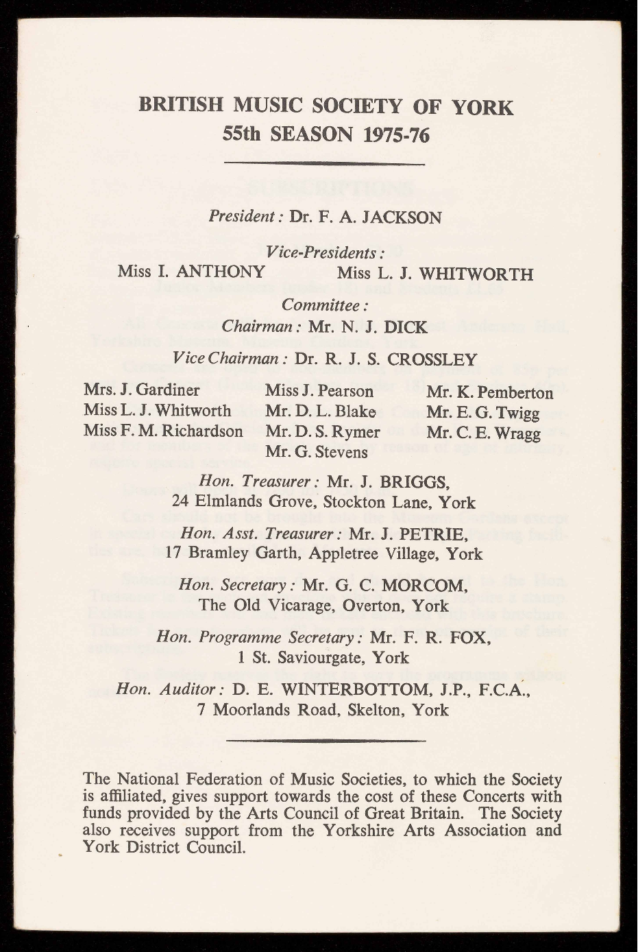Concerts are open to members on payment of subscription of £3.30
