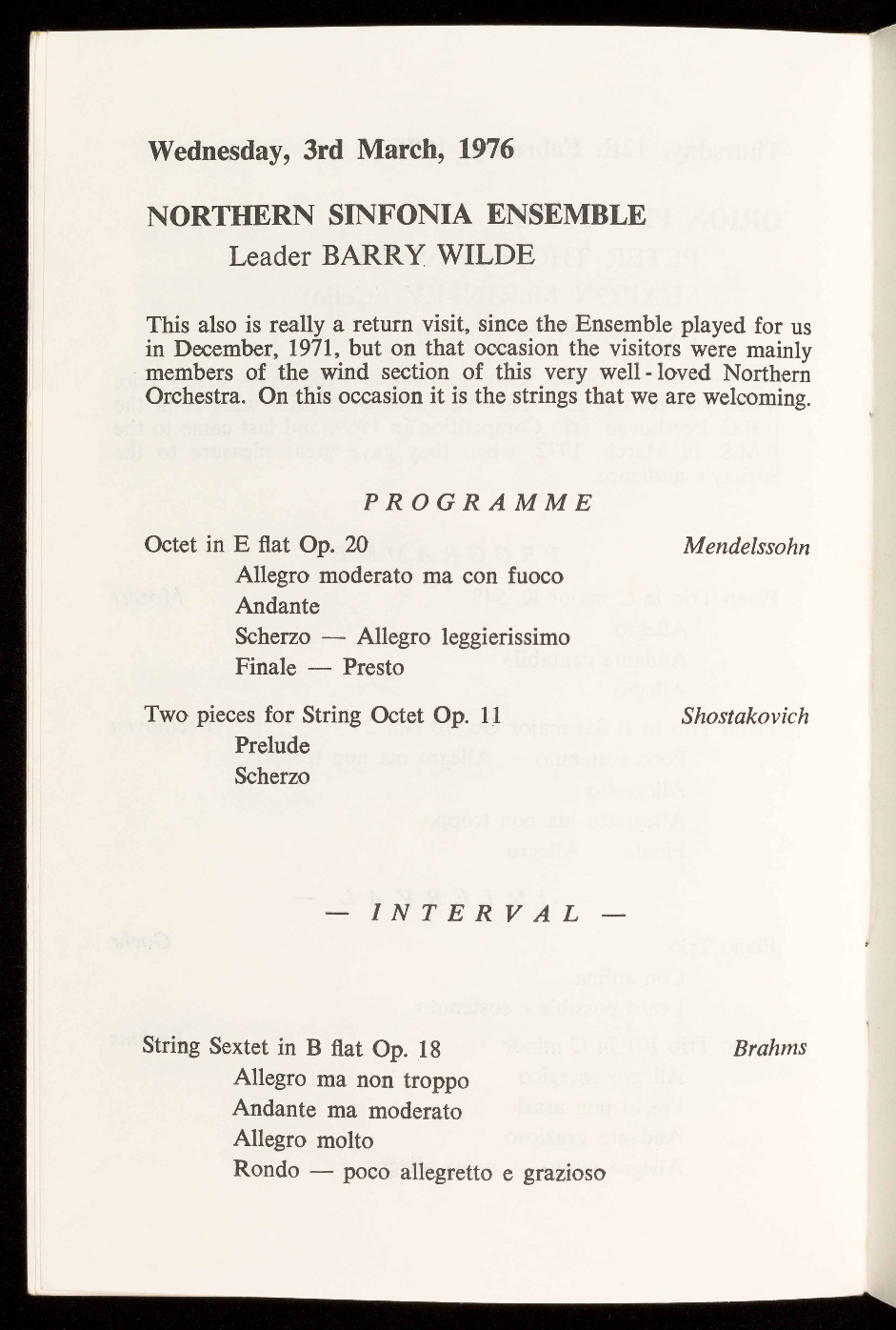 Works by Mendelssohn, Shostakovich and Brahms