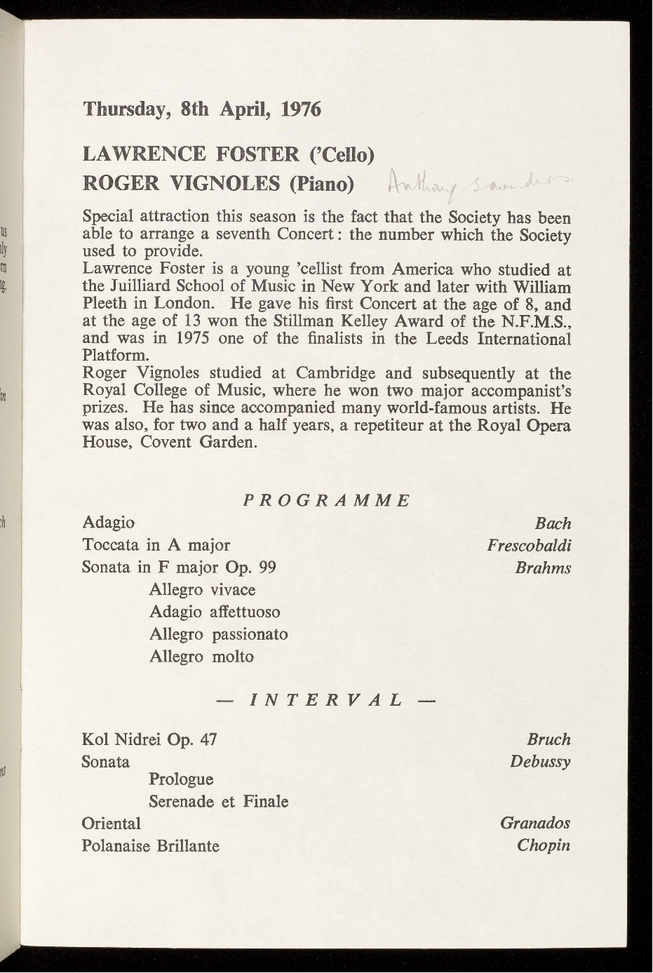 LAWRENCE FOSTER ('Cello) and