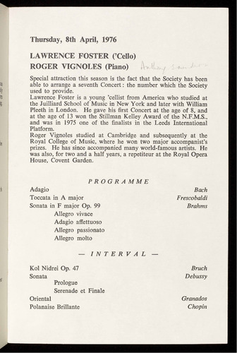 Lawrence Foster is a young 'cellist from America who studied at