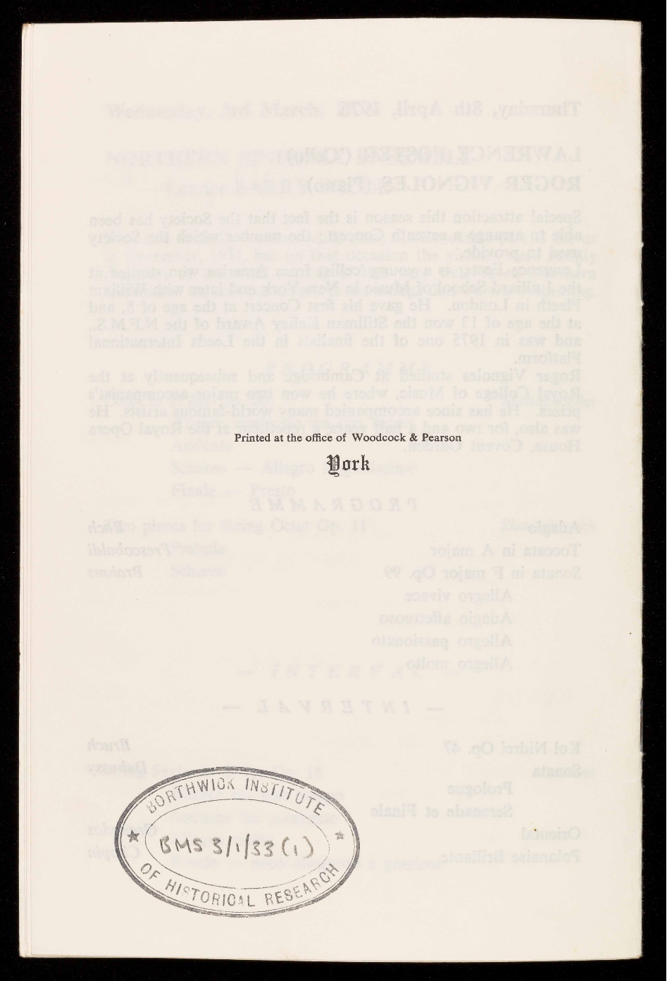 funds provided by the Arts Council of Great Britain. The Society