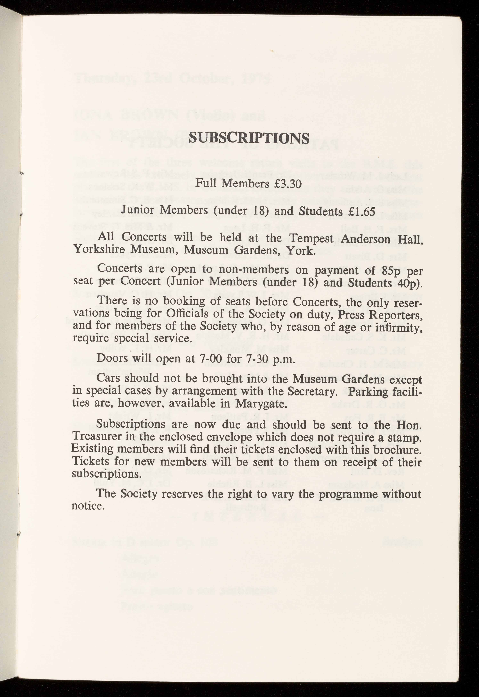 seat per Concert (Junior Members (under 18) and Students 40p).