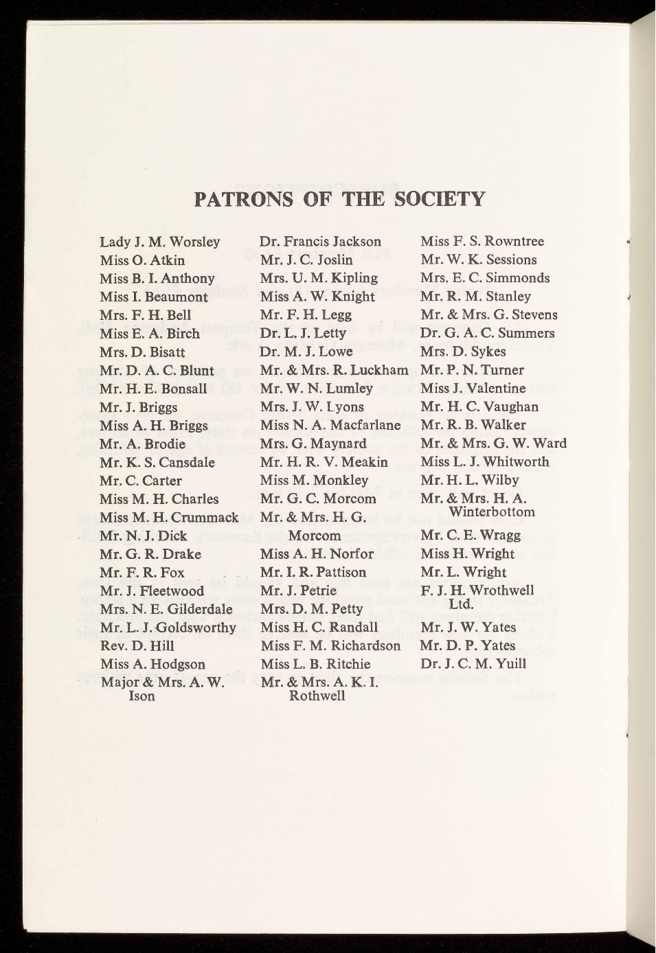 PATRONS OF THE SOCIETY