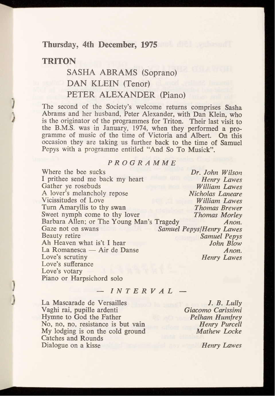 Programme from the time of Samuel Pepys