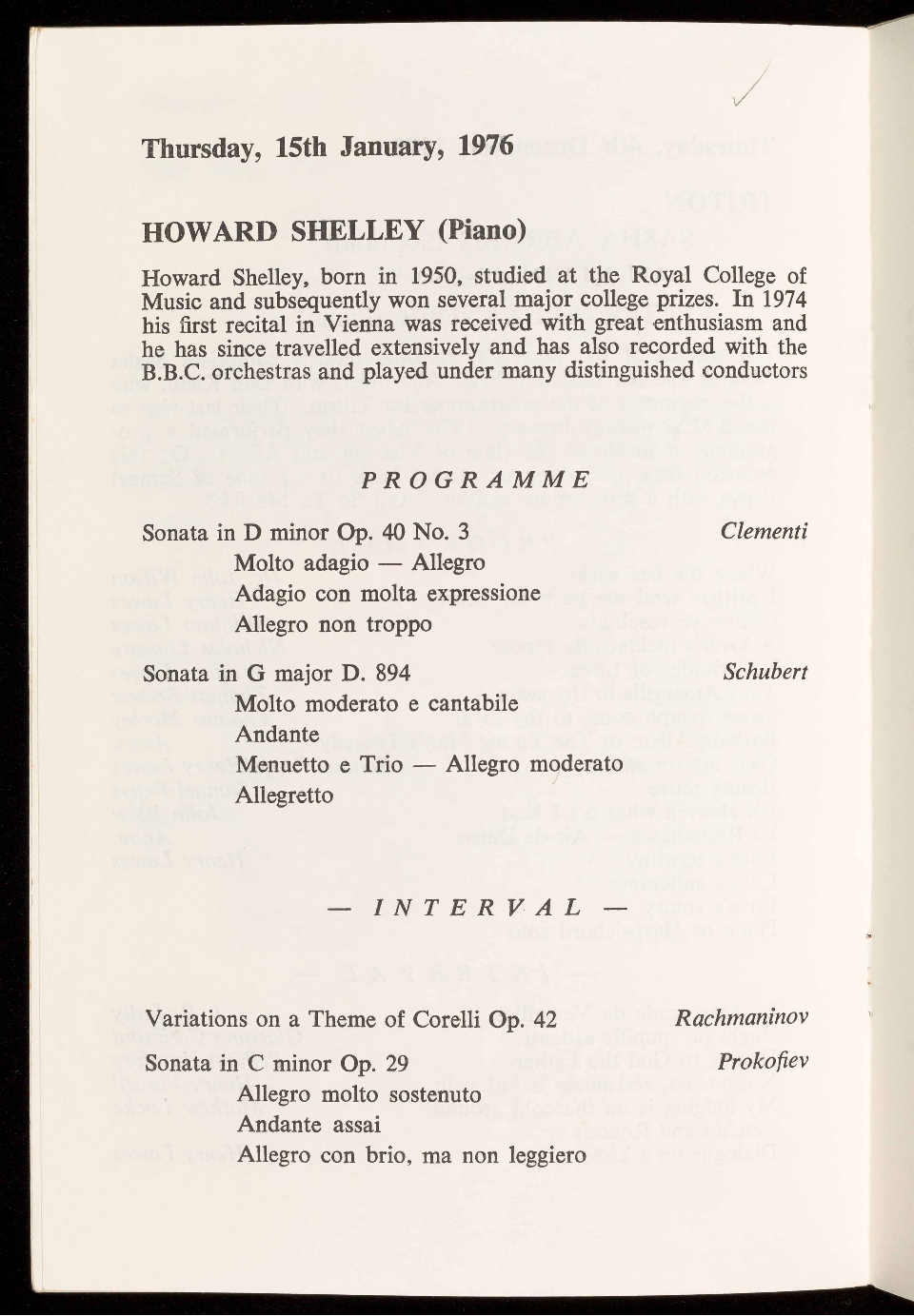 Works by Clementi, Schubert, Rachmaninov