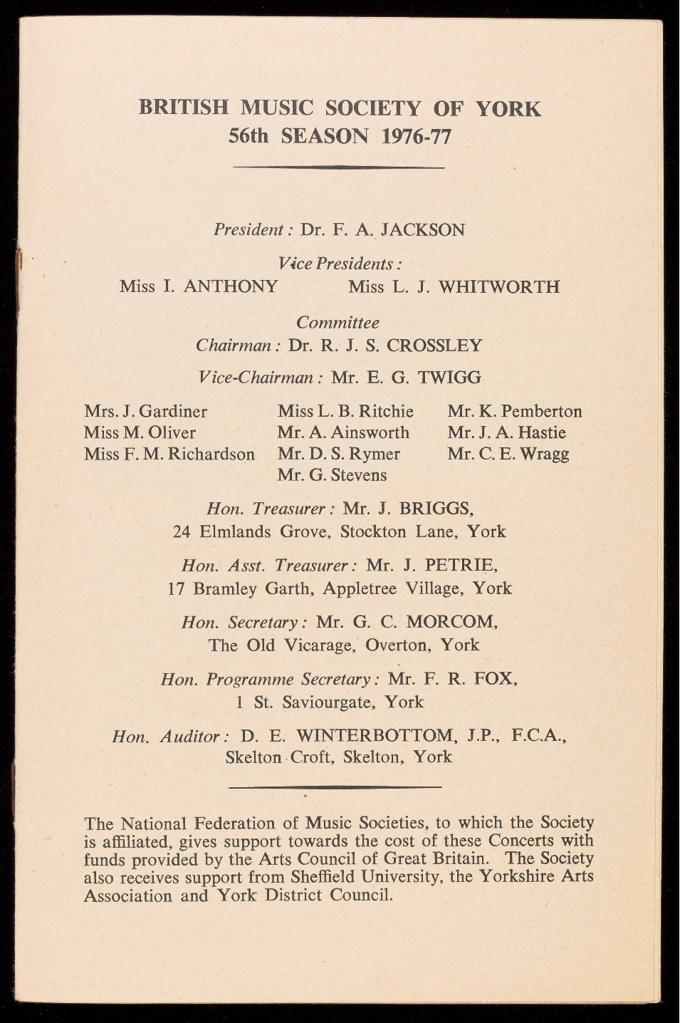 Beningbrough 261, or from the Honorary Treasurer, J. Briggs, 24