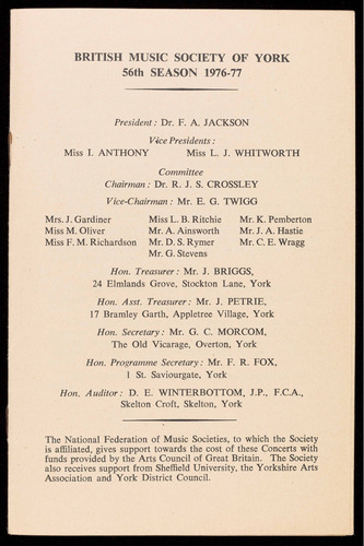 BRITISH MUSIC SOCIETY OF YORK