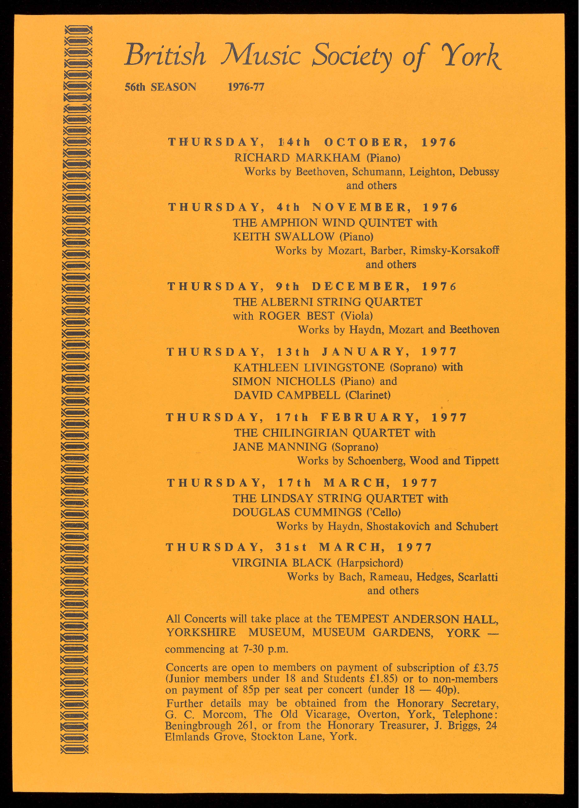 Concerts are open to members on payment of subscription of £3.75