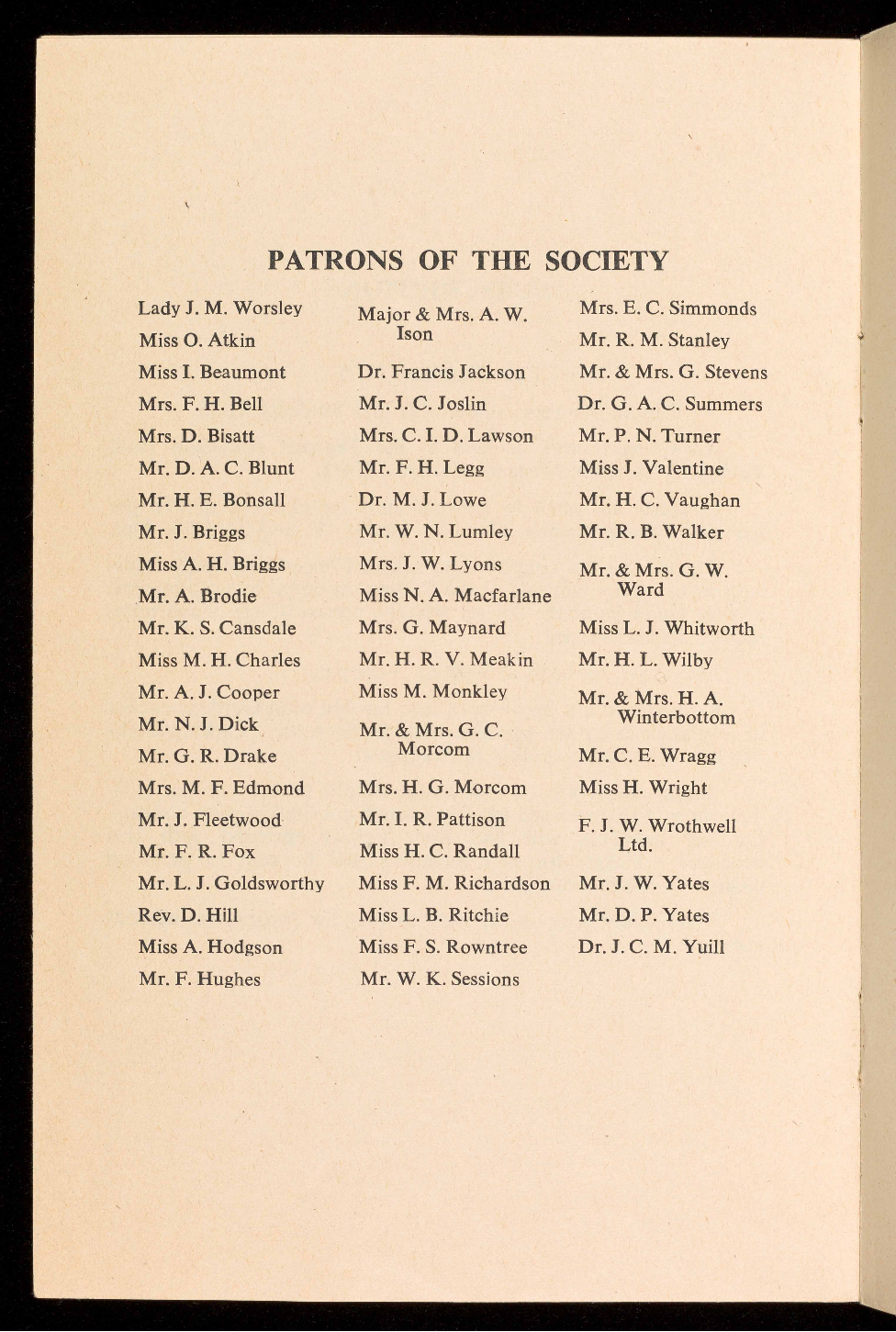 PATRONS OF THE SOCIETY