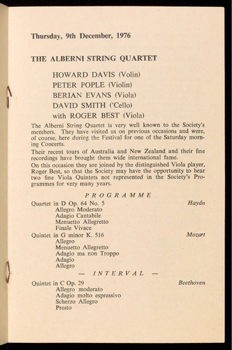 Davis, the leader of the Alberni Quartet, when they played a duo