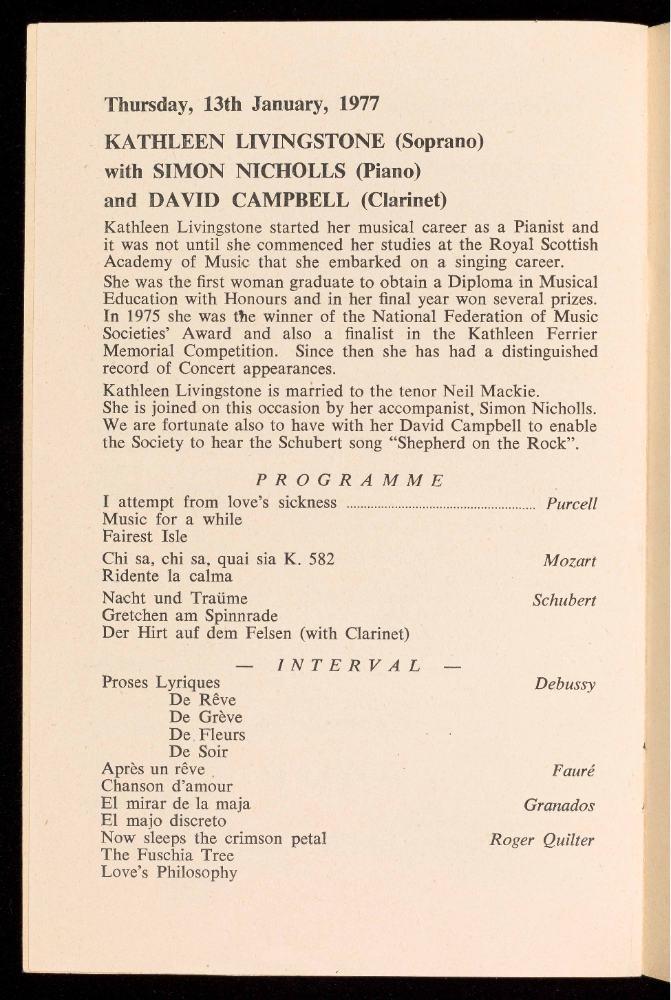 KATHLEEN LIVINGSTONE (Soprano) with