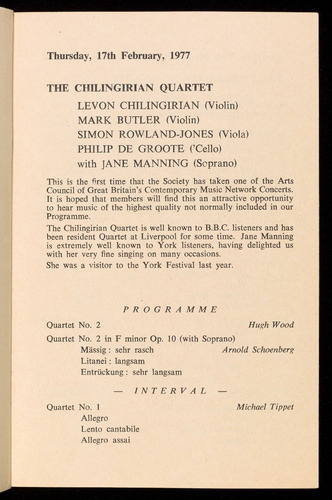 Works by Schoenberg, Wood and Tippett