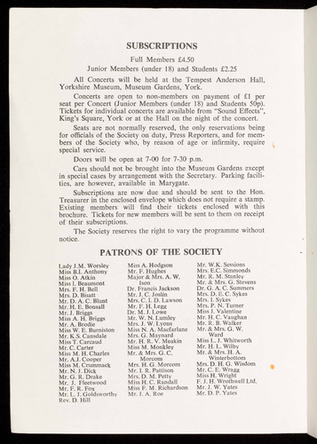 seat per Concert (Junior Members (under 18) and Students 50p).