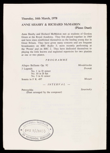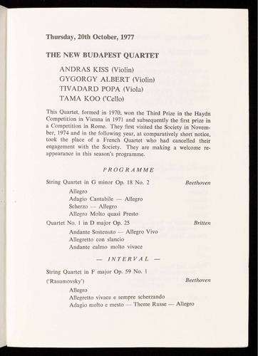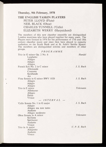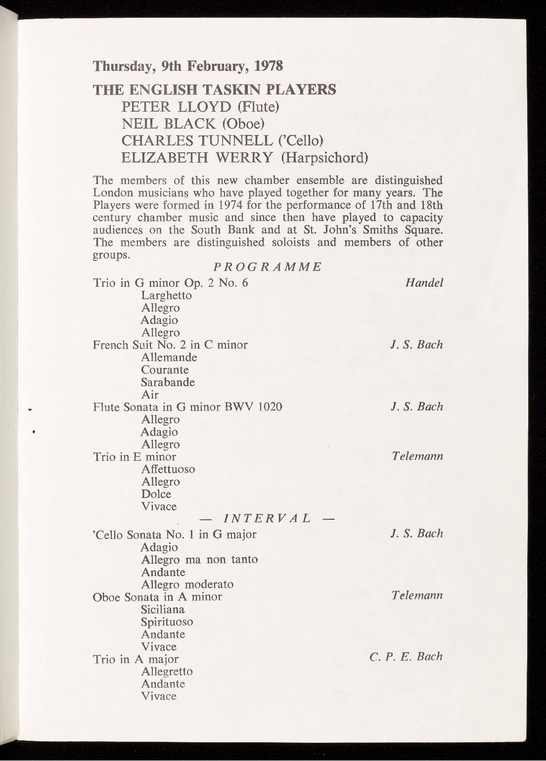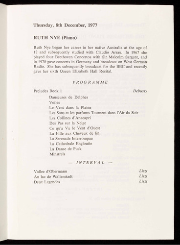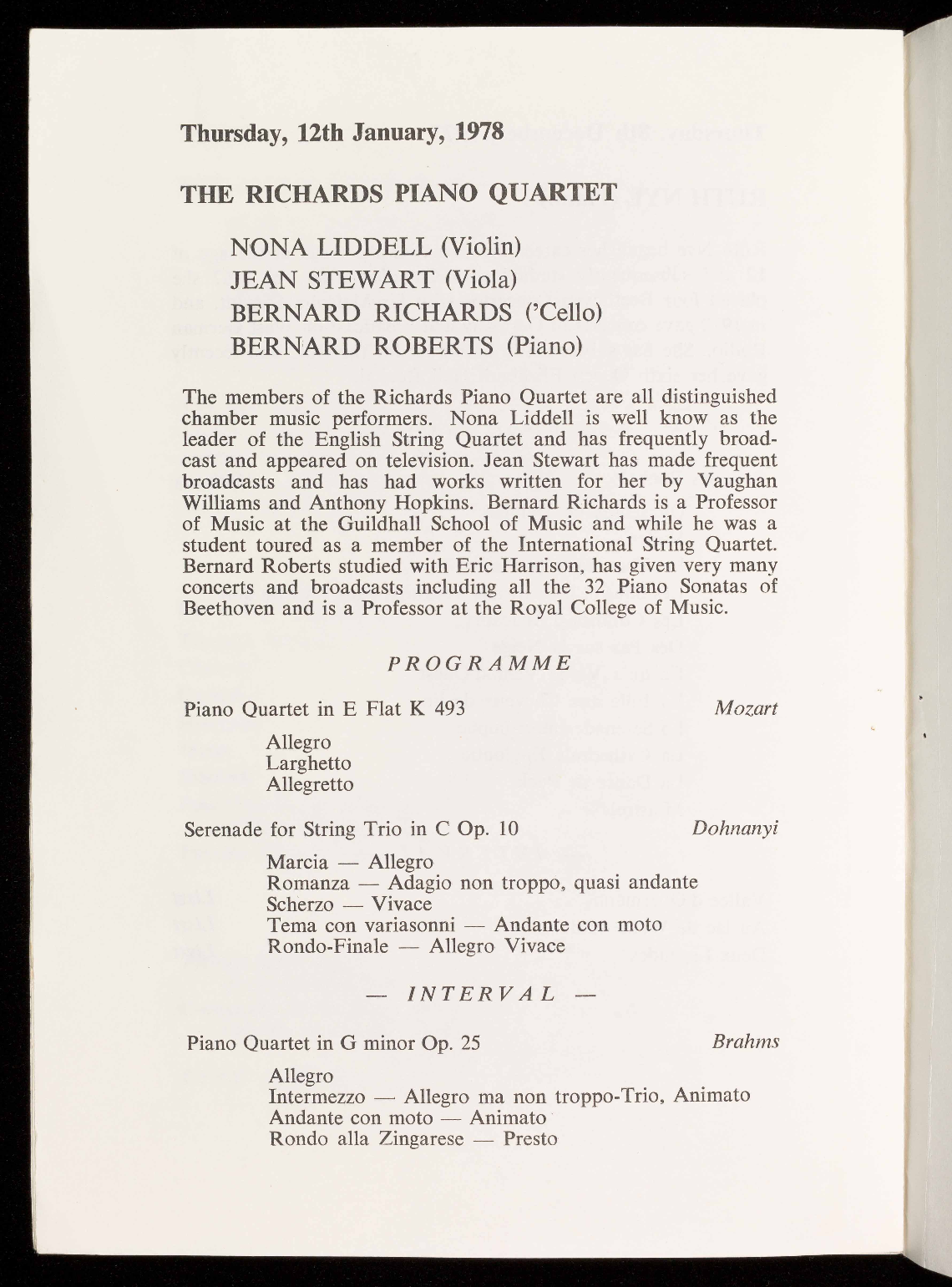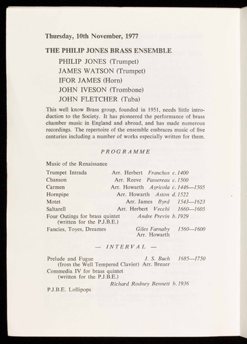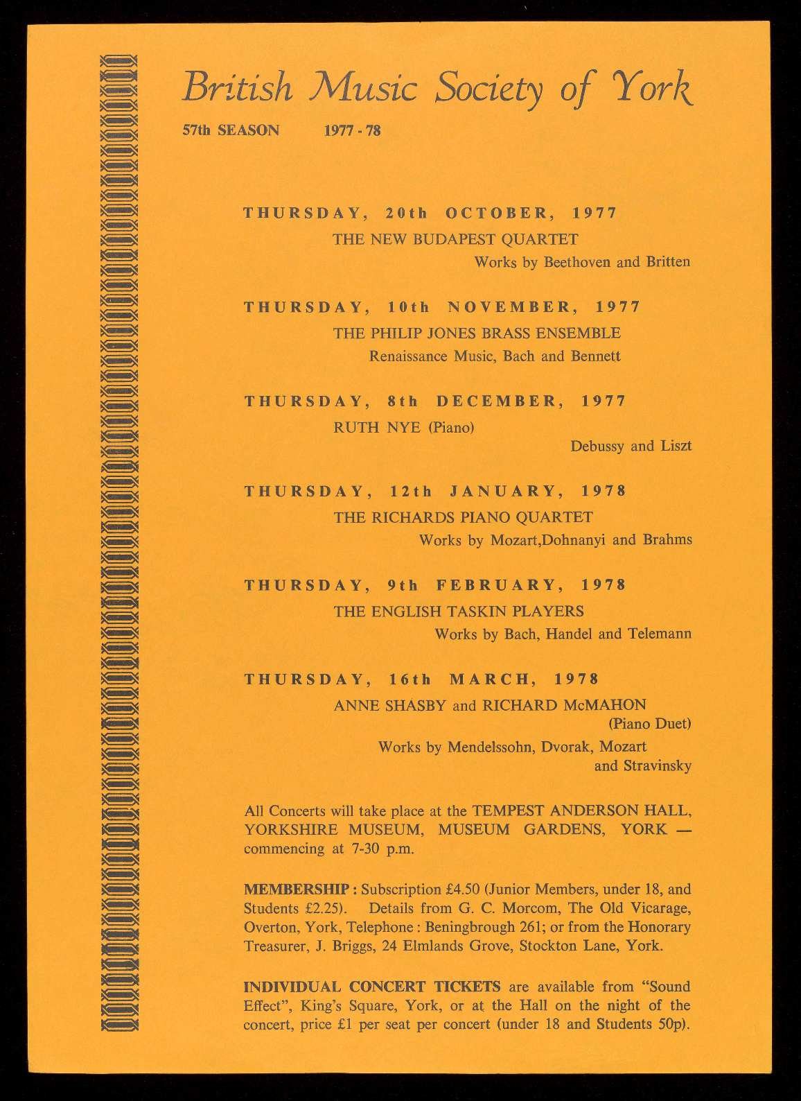 concert, price £1 per seat per concert (under 18 and Students 50p).