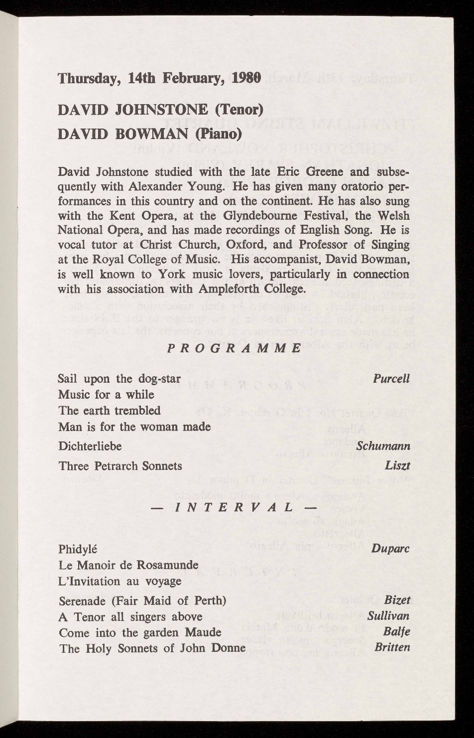 Works by Purcell, Schumann, Liszt, Duparc, Bizet,