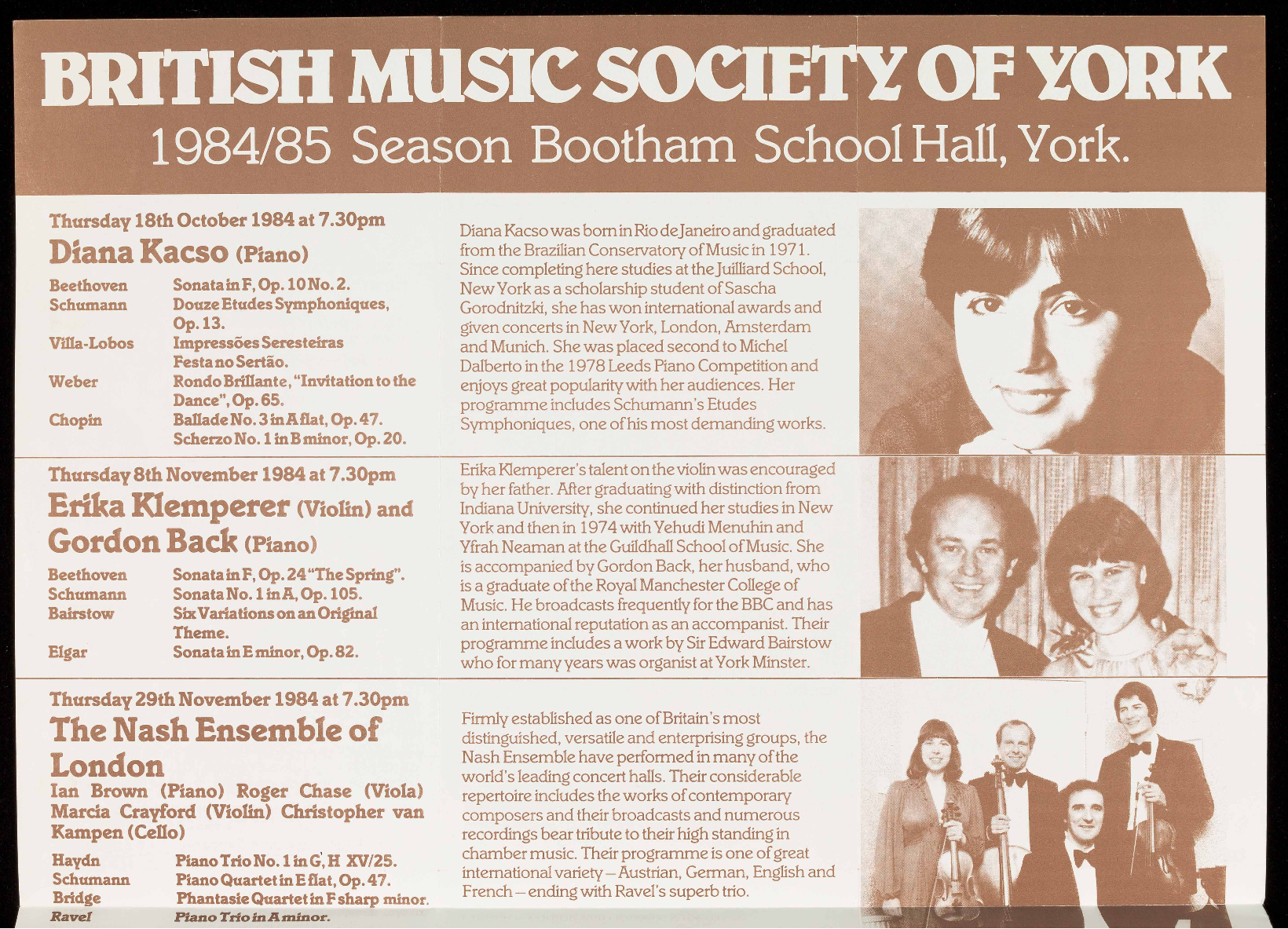 All concerts take place in Bootham School Hall.
