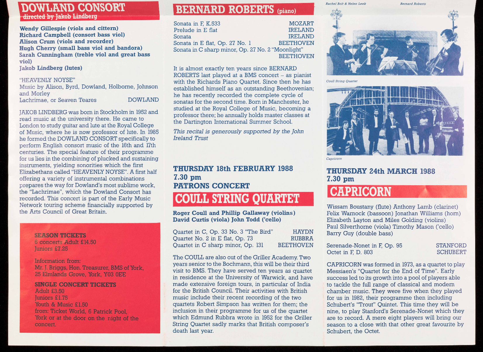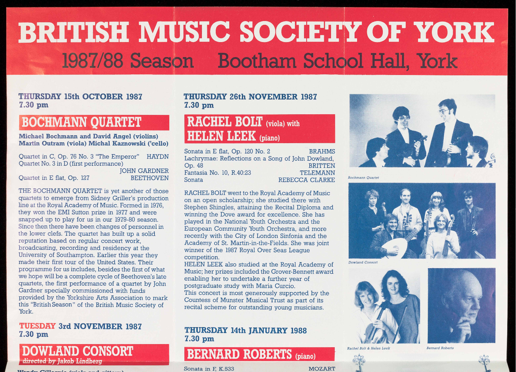 All concerts take place in Bootham School Hall