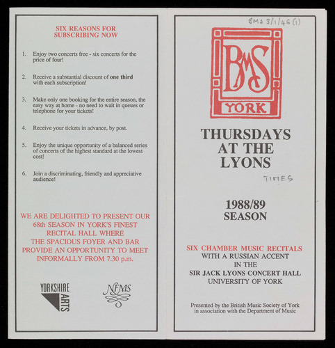 AND THE BRITISH MUSIC SOCIETY OF YORK.