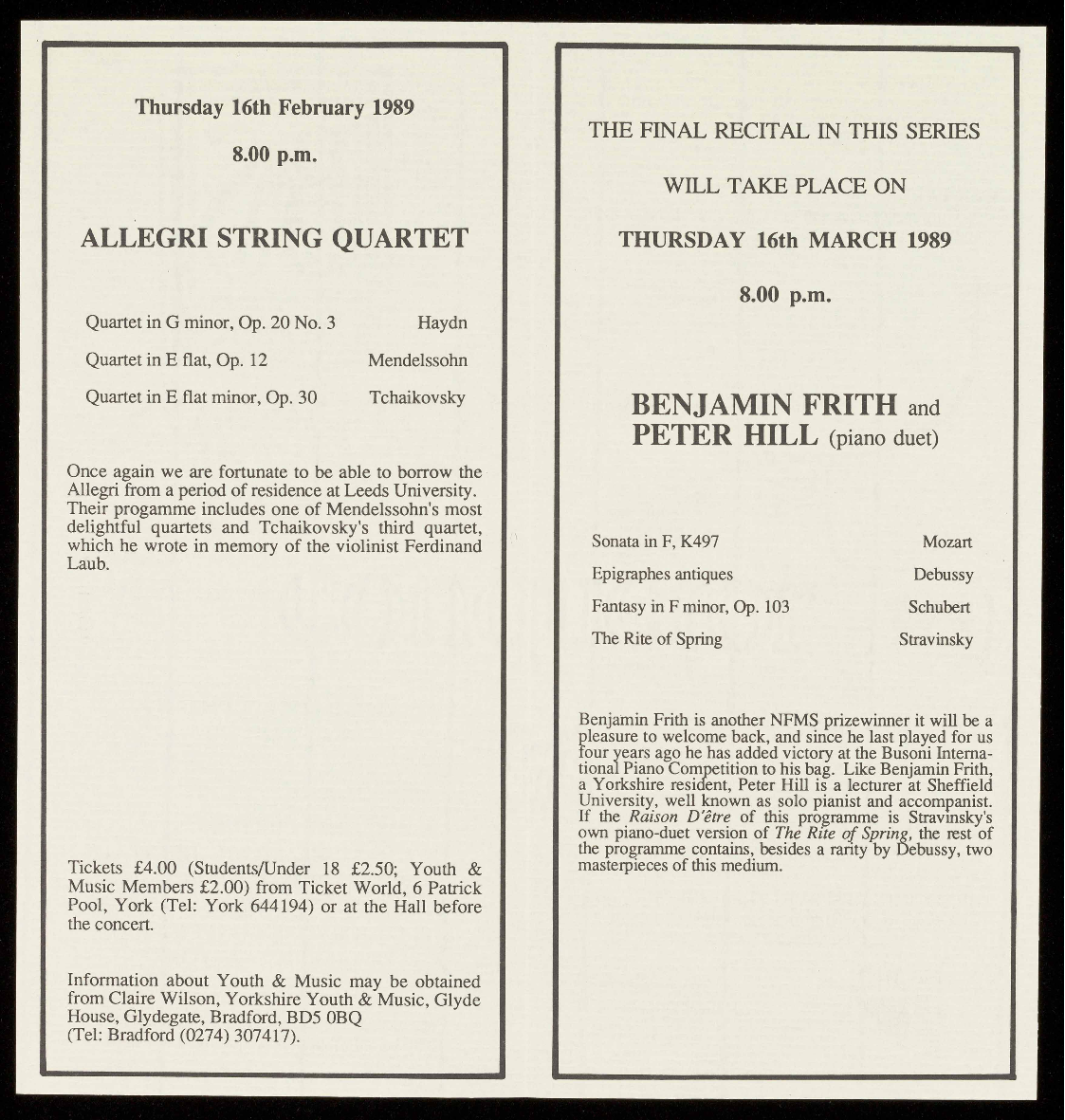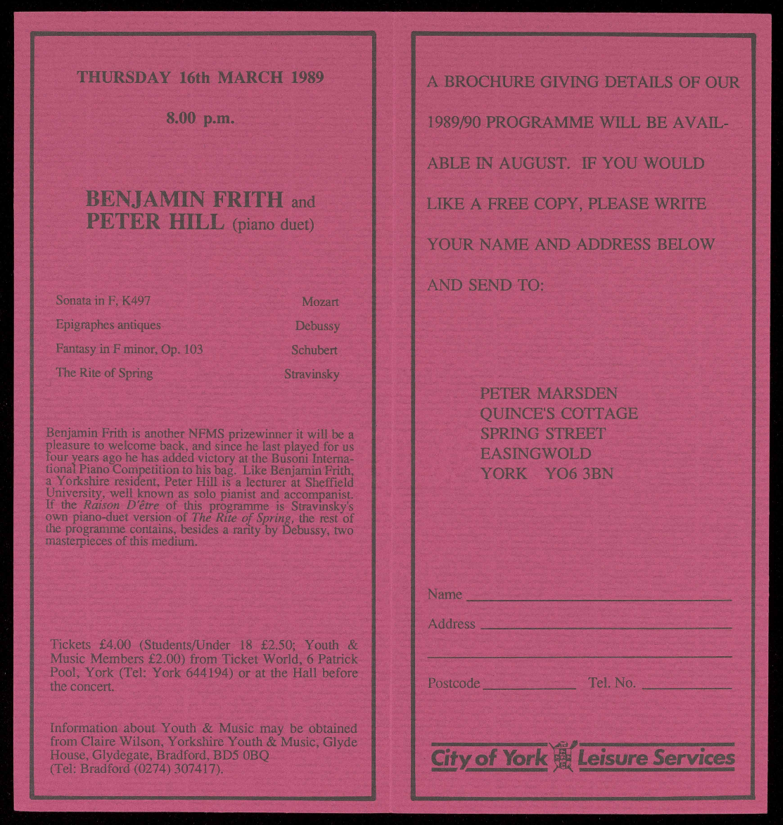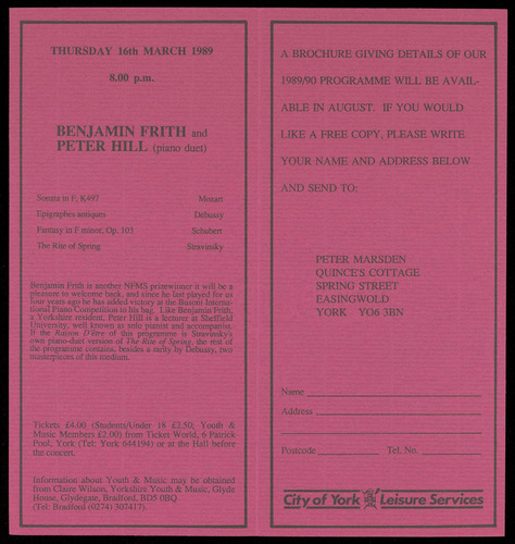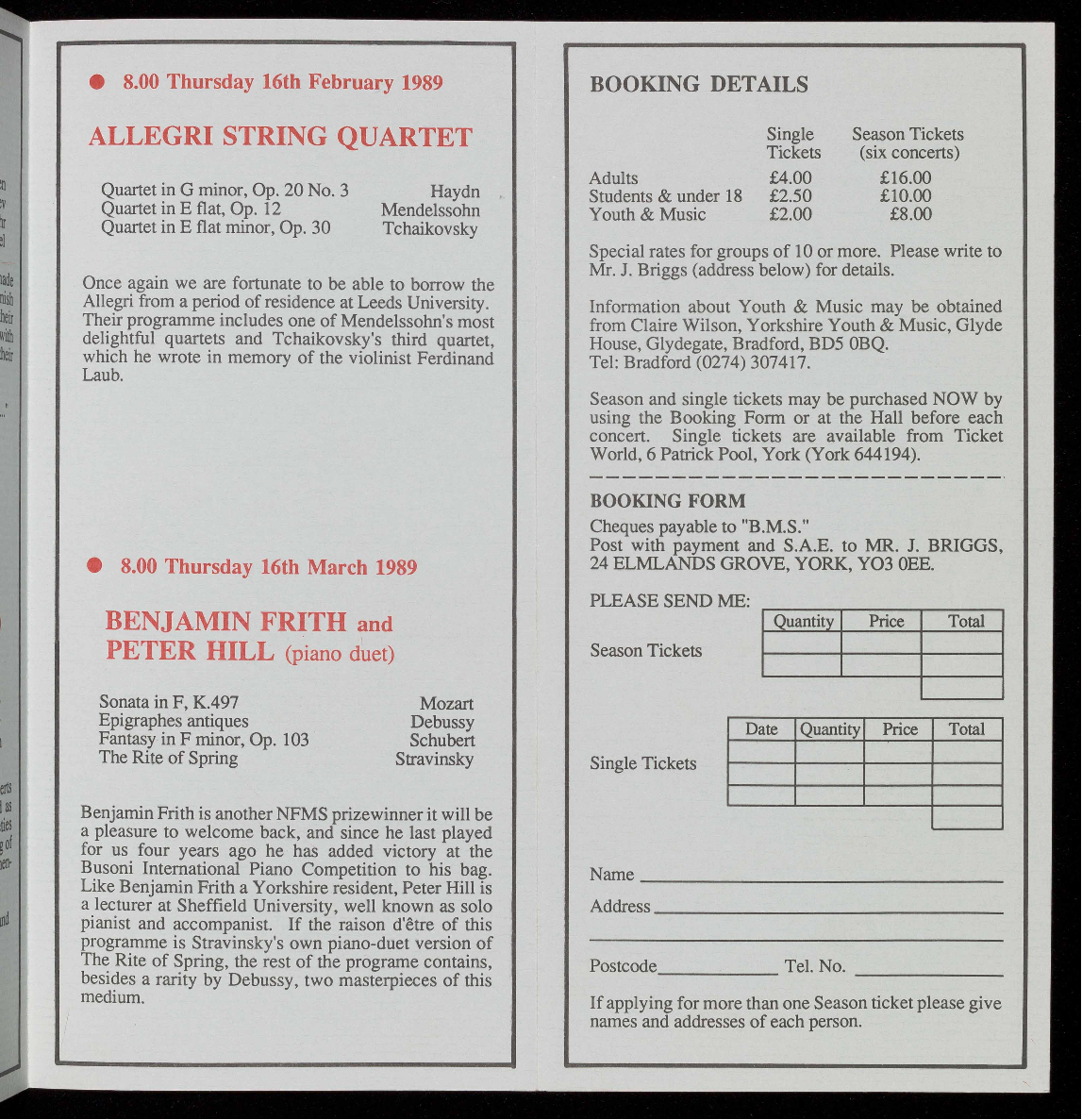 (Tel: York 644194) or at the Hall before the concert.