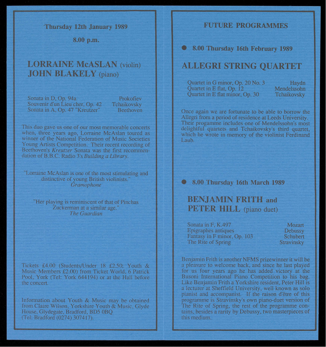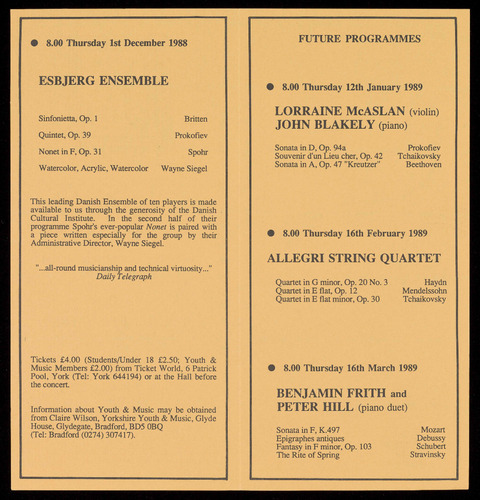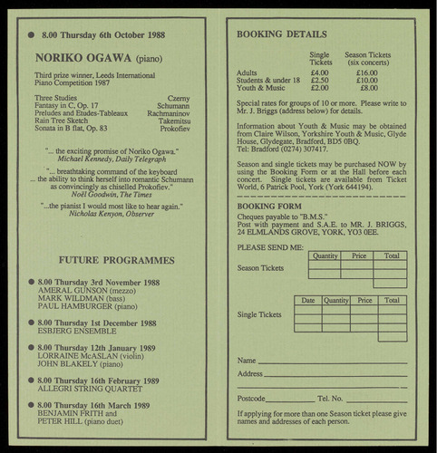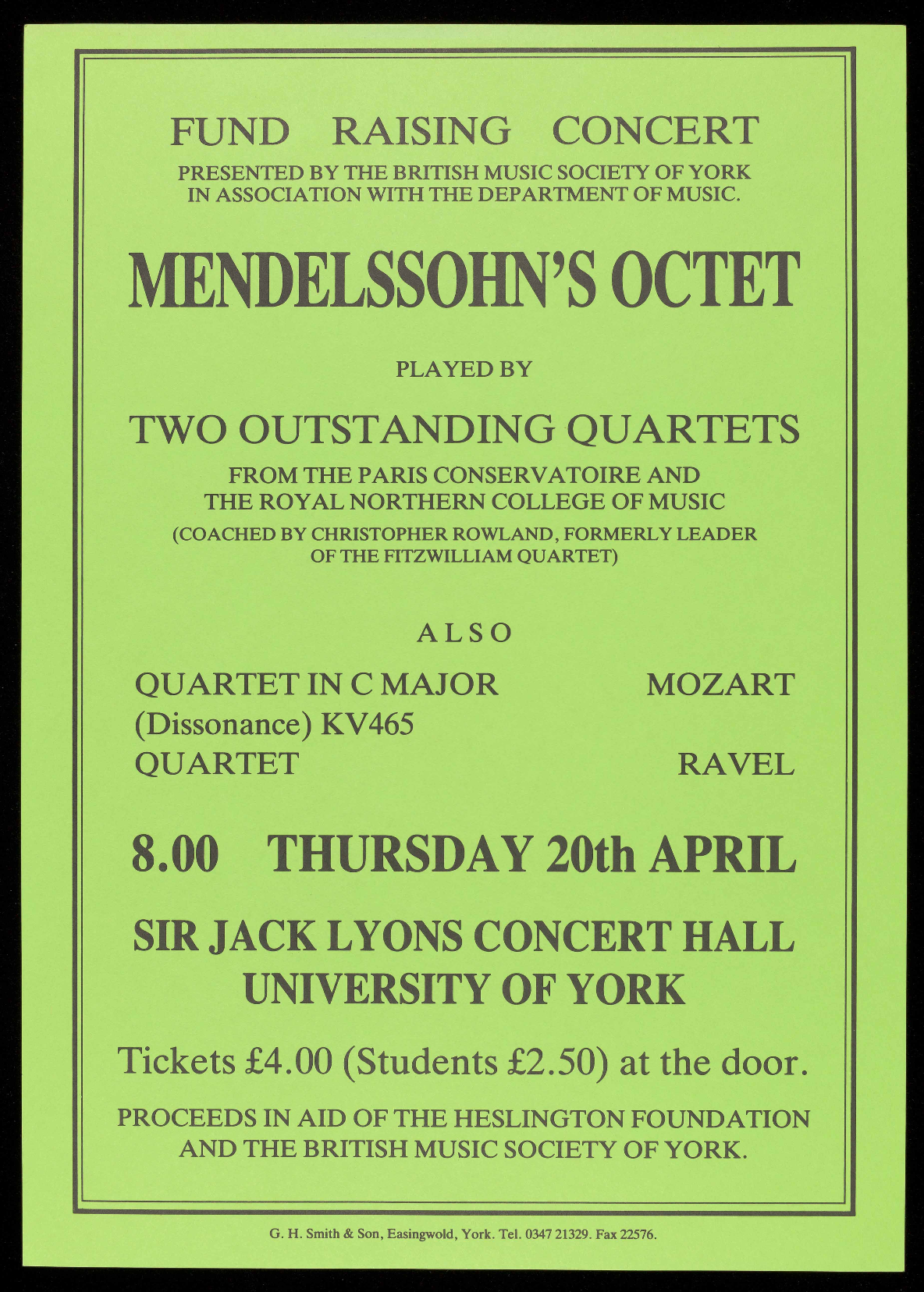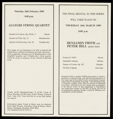 (Tel: York 644194) or at the Hall before the concert.