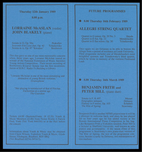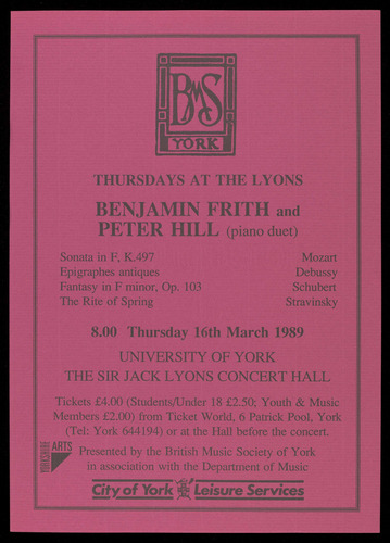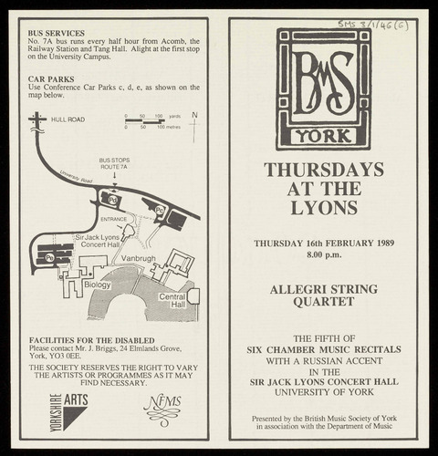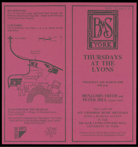 PRESENTED BY THE BRITISH MUSIC SOCIETY OF YORK