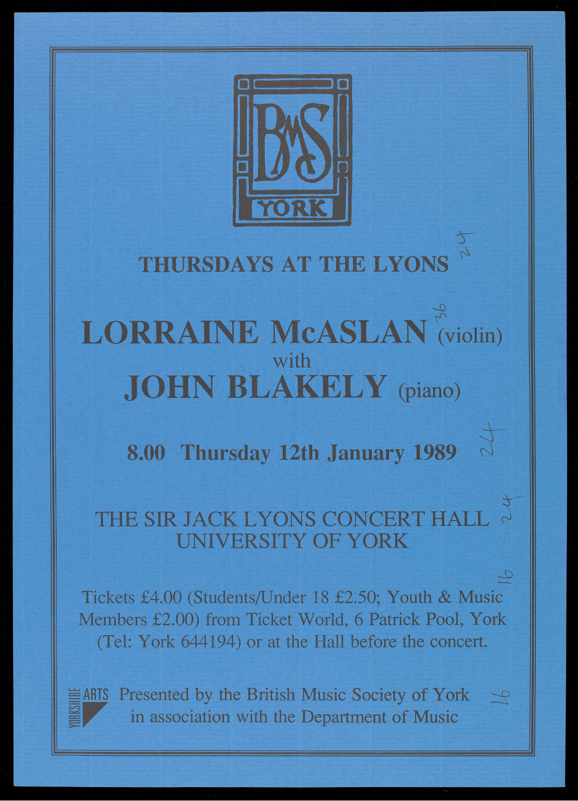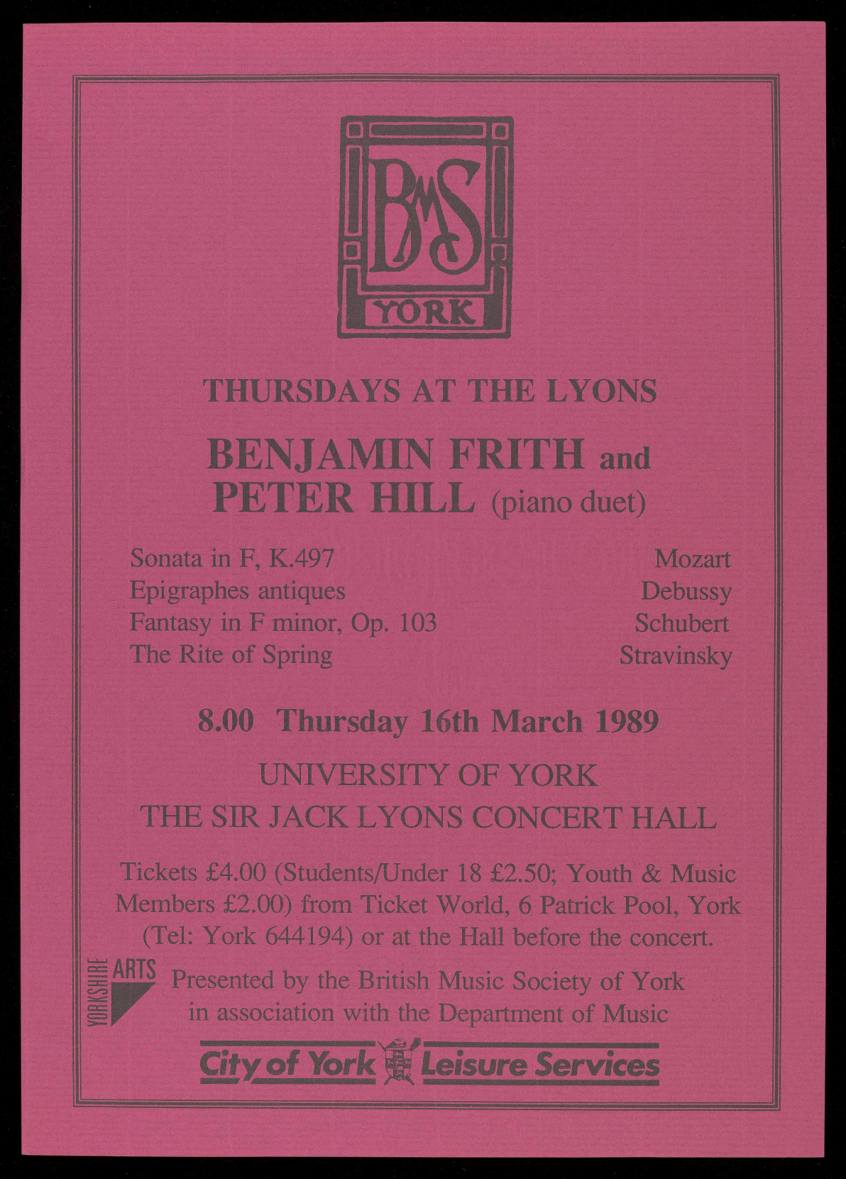 Members £2.00) from Ticket World, 6 Patrick Pool, York