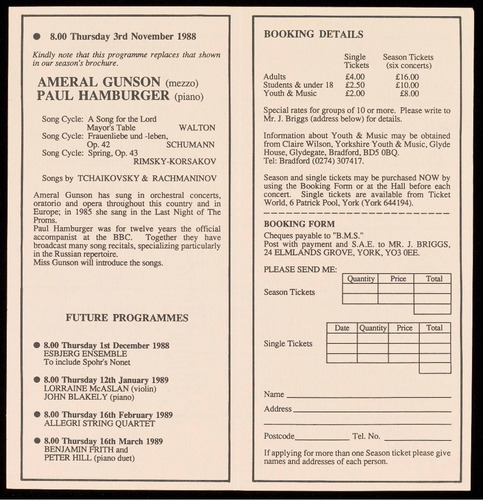 Tickets £4.00 (Students/Under 18 £2.50; Youth & Music