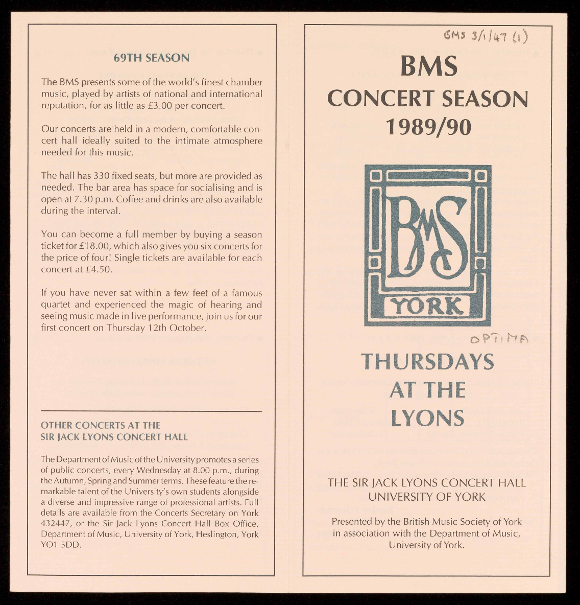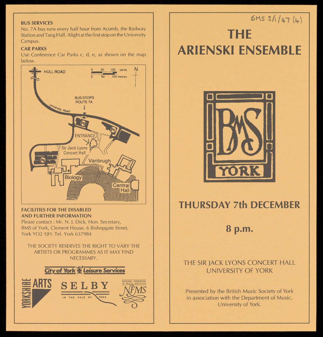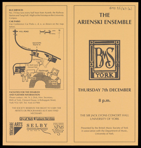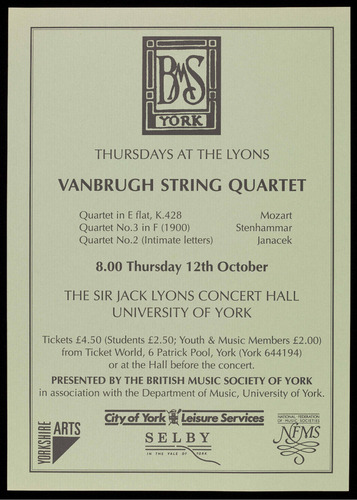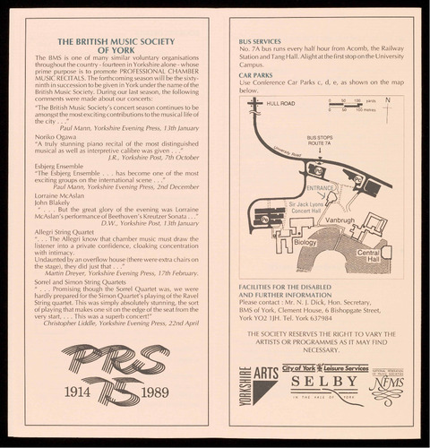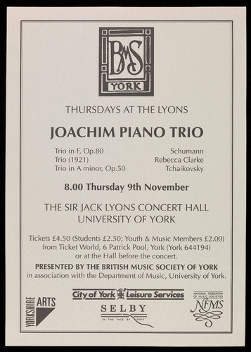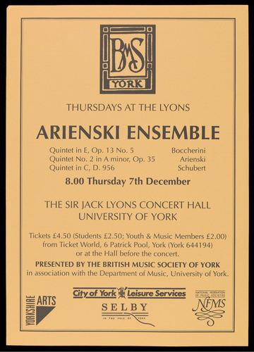 PRESENTED BY THE BRITISH MUSIC SOCIETY OF YORK