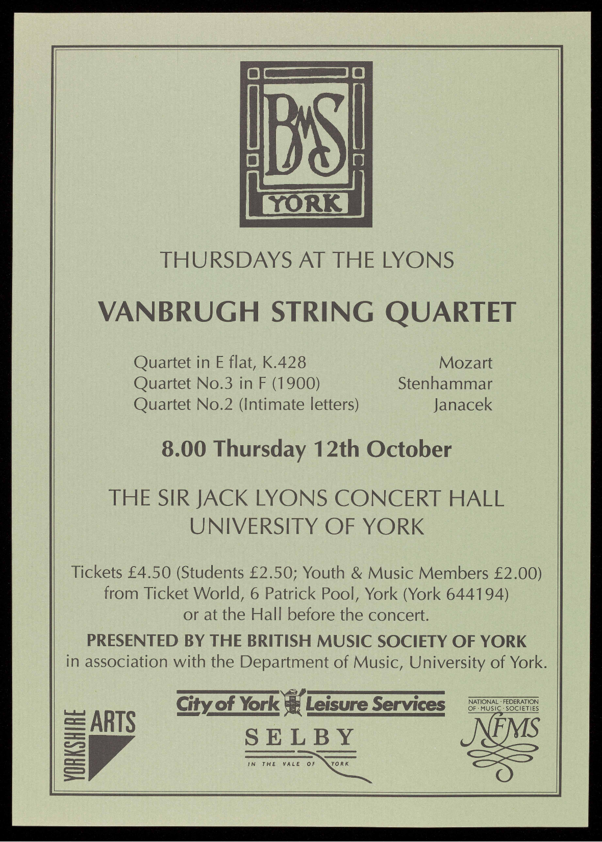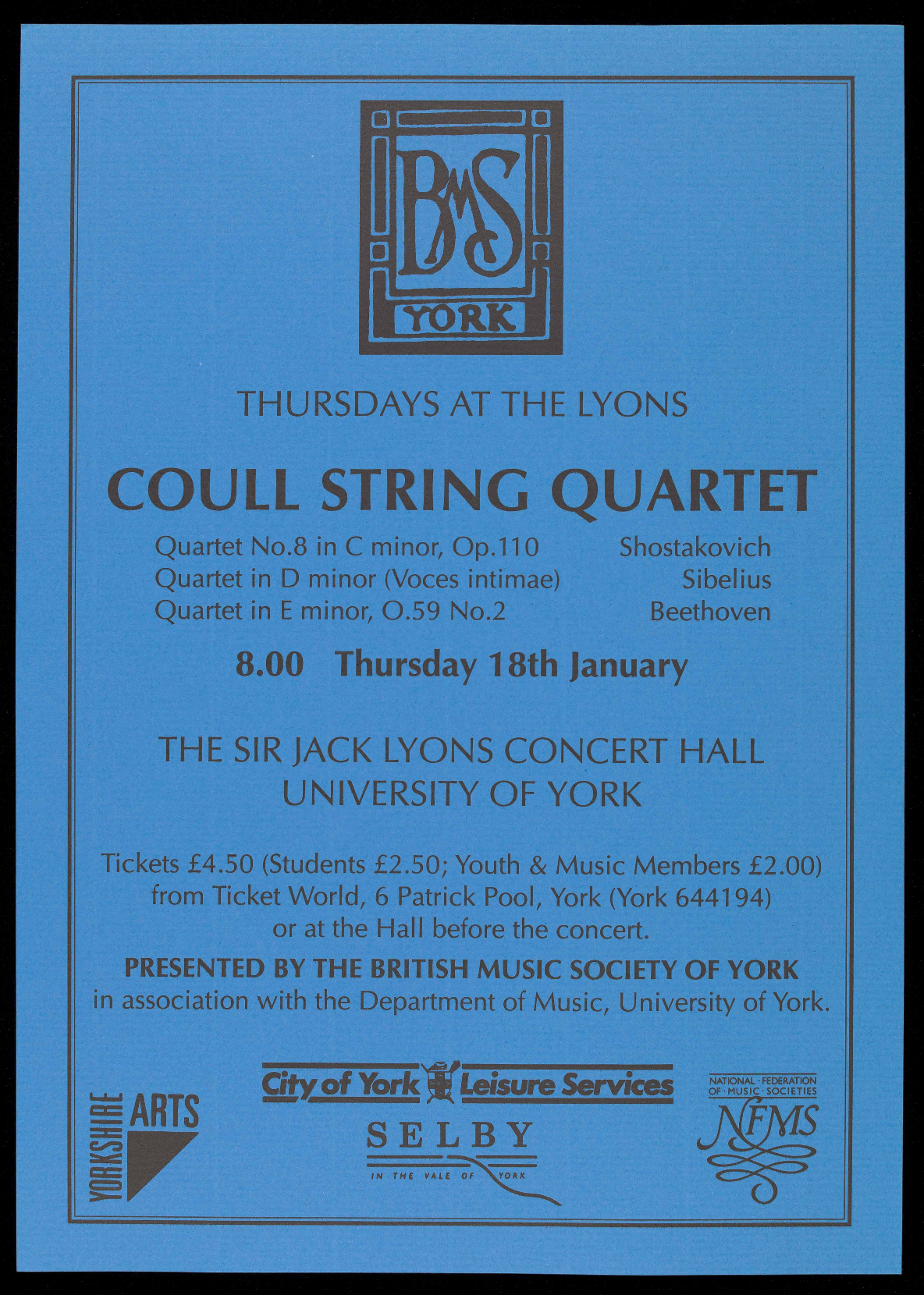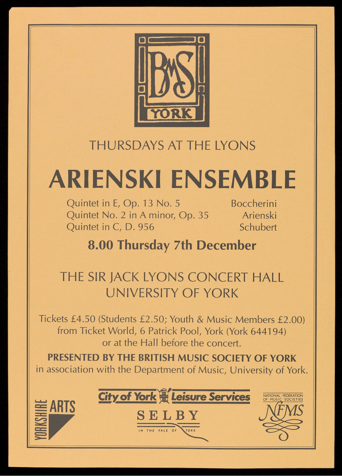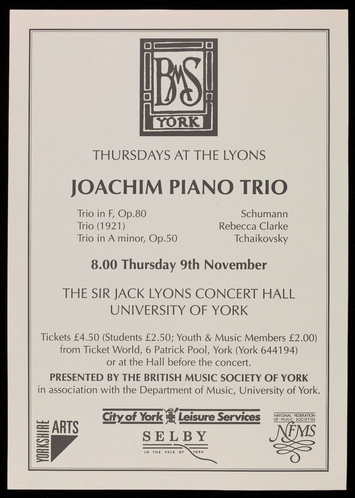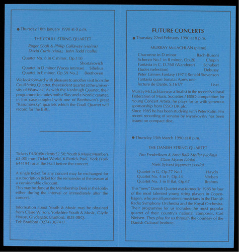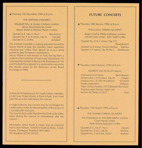 details are available from the Concerts Secretary on York