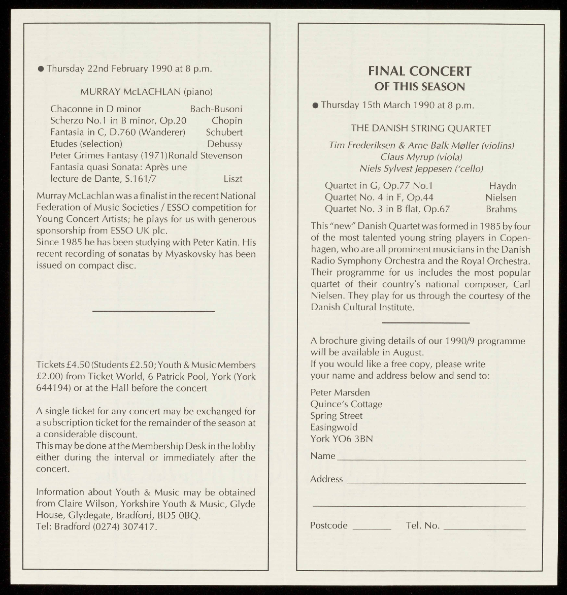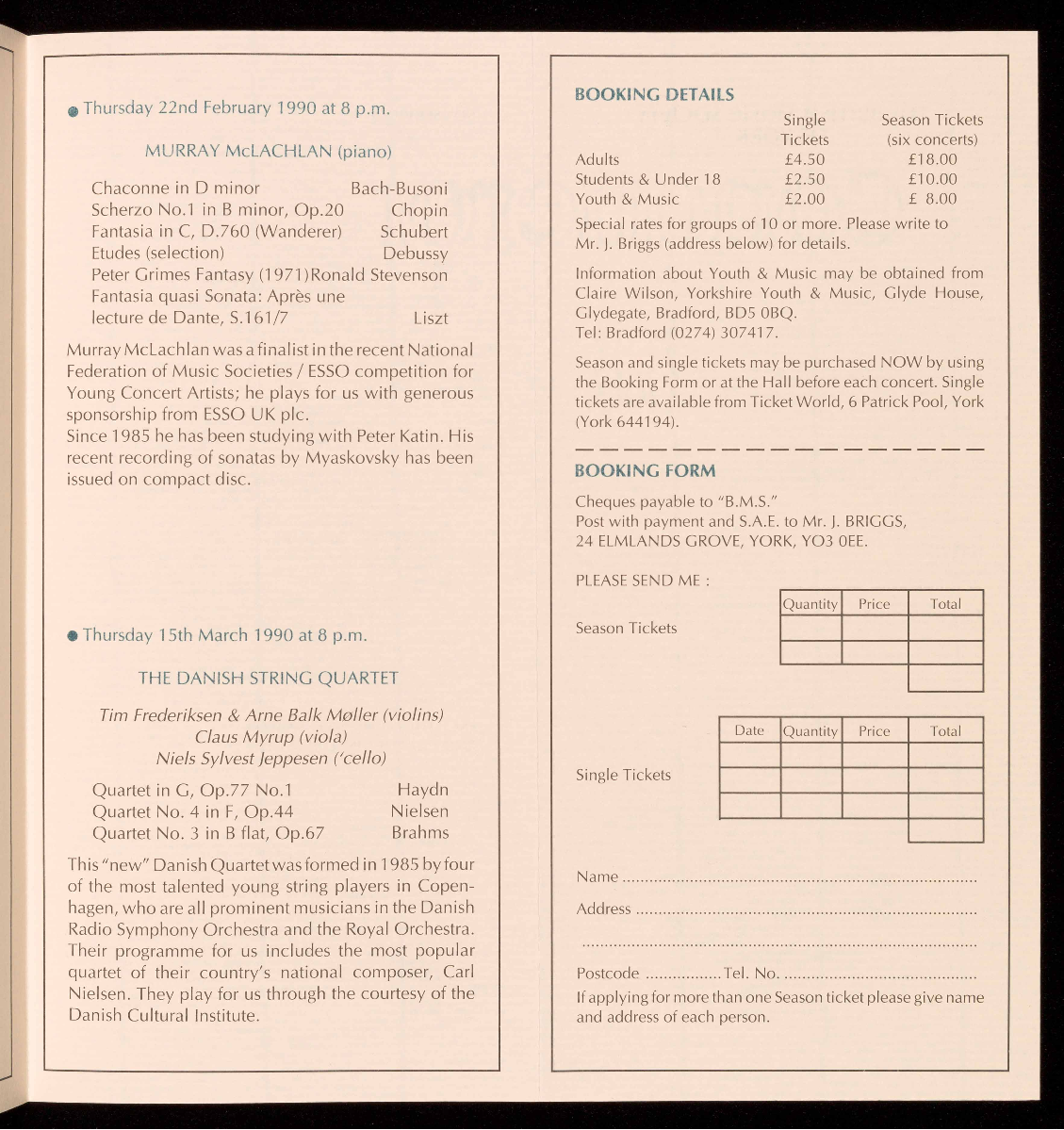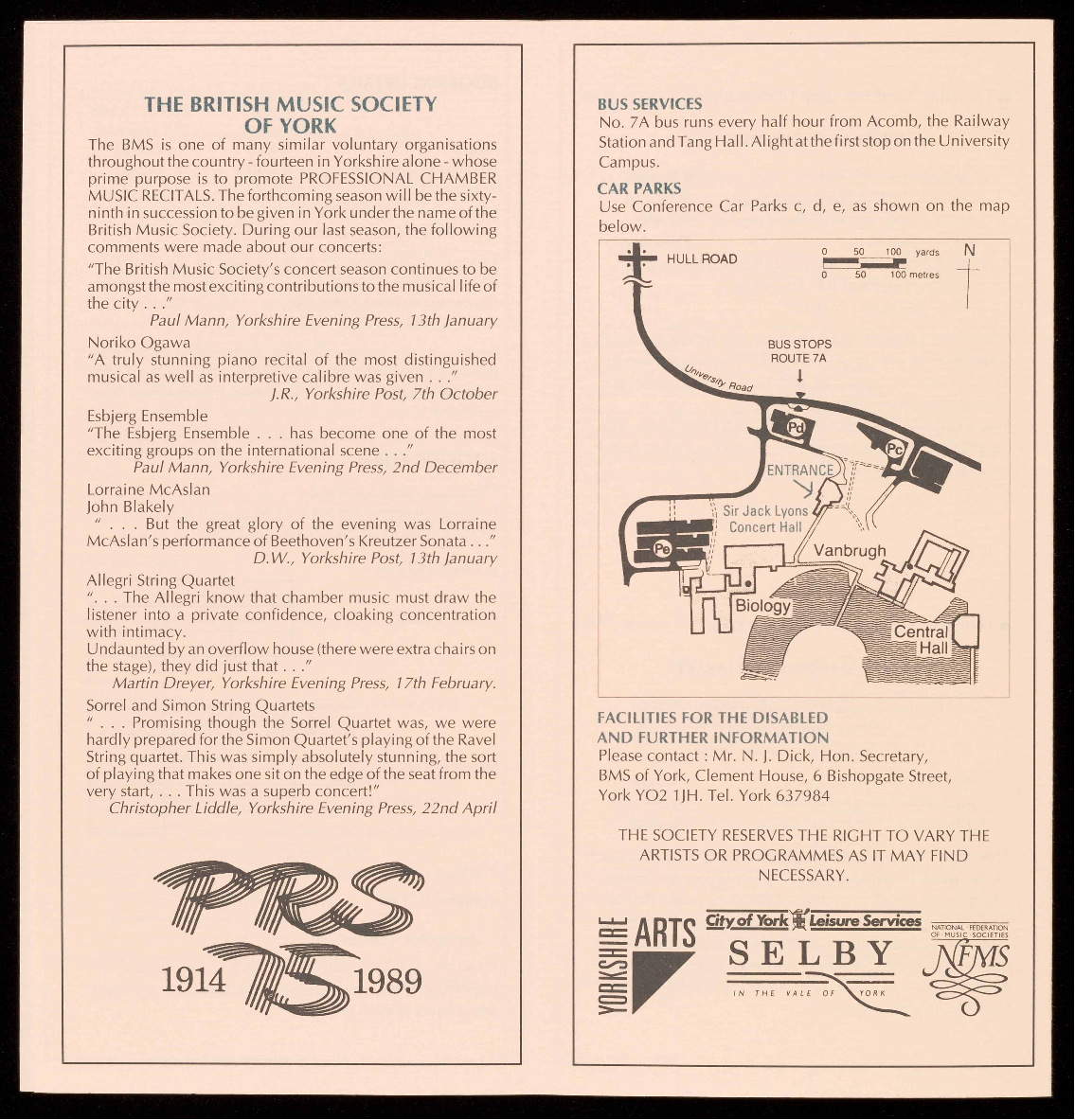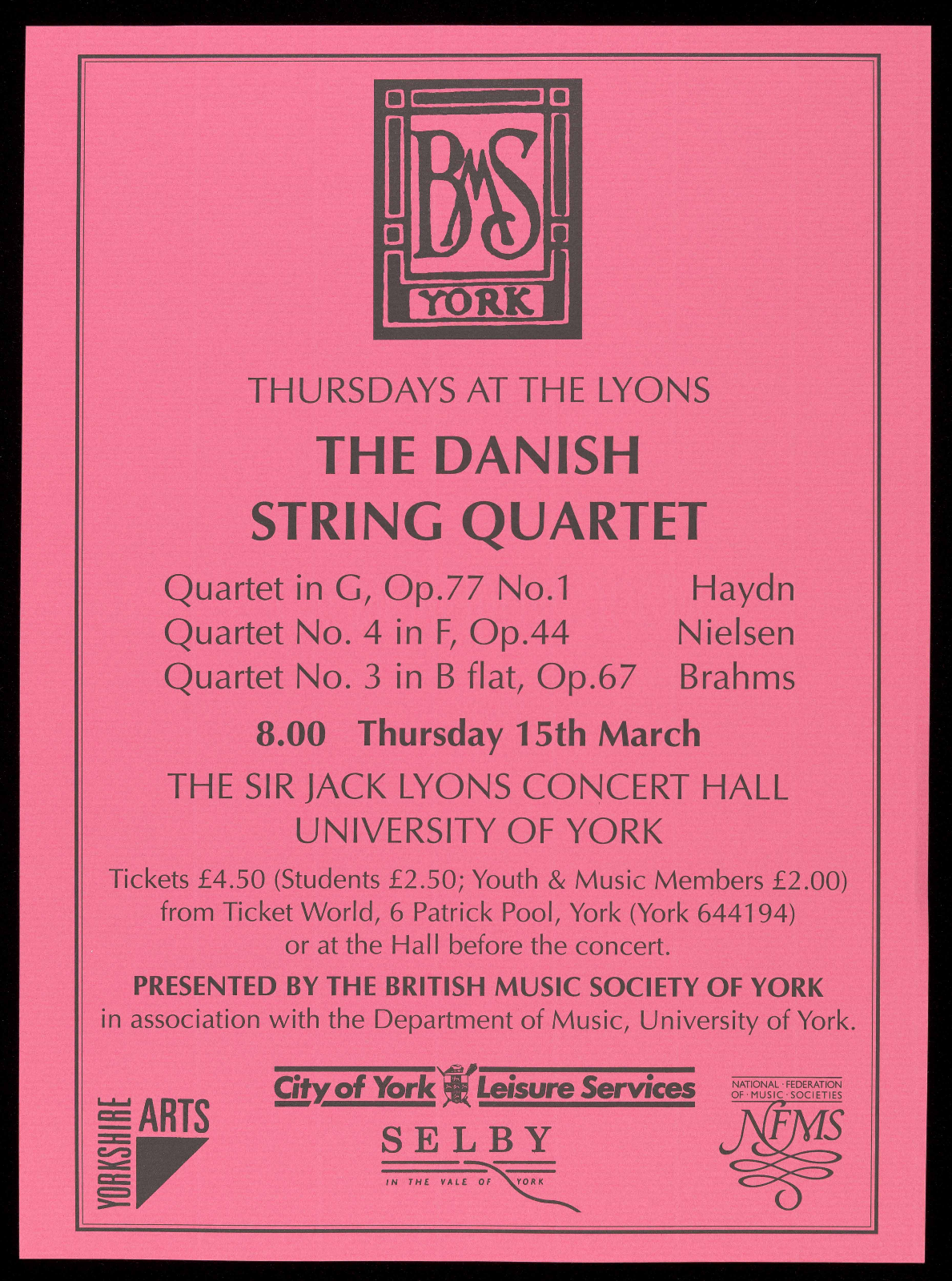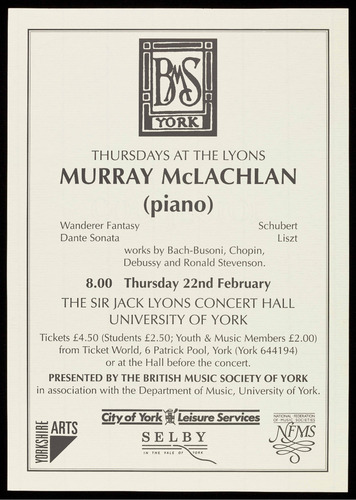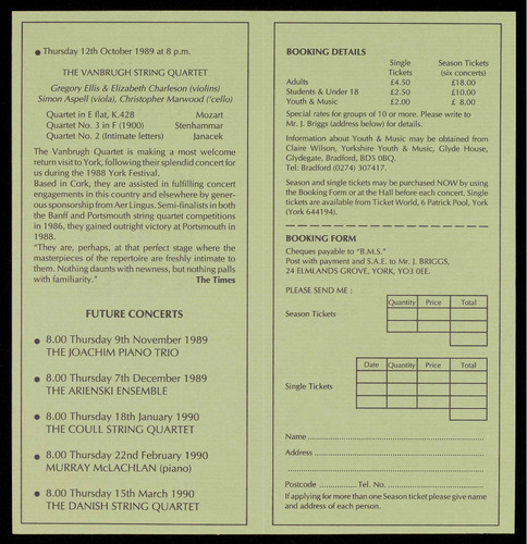 details are available from the Concerts Secretary on York