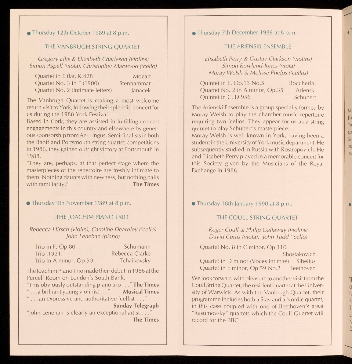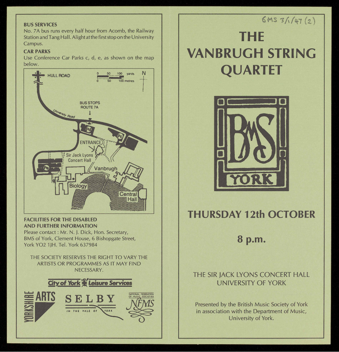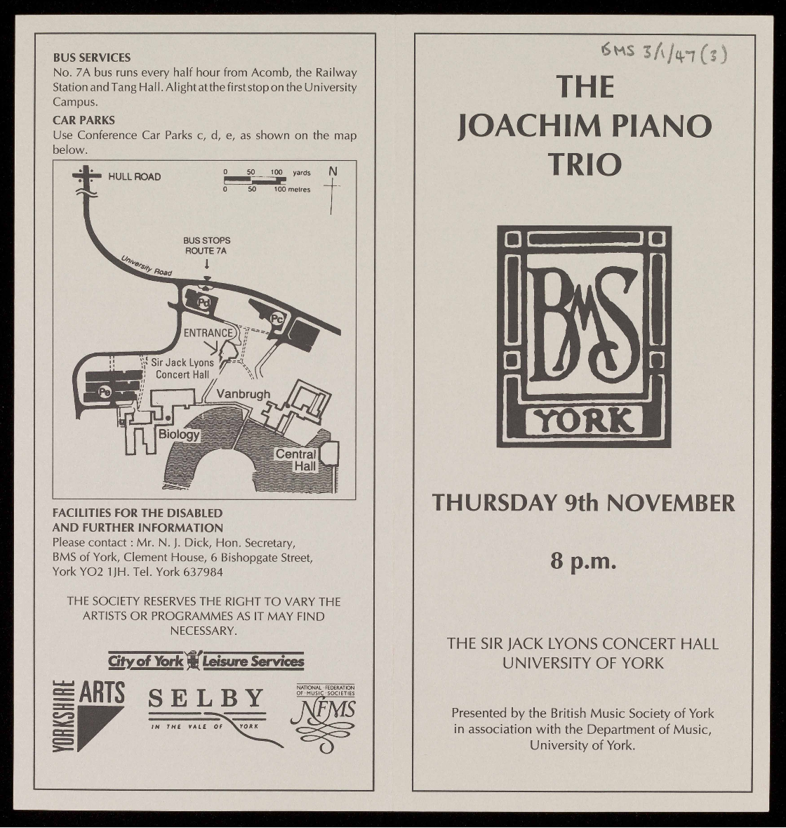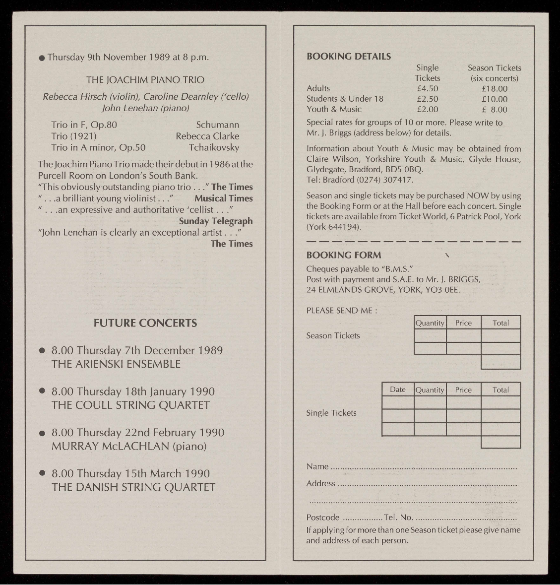 details are available from the Concerts Secretary on York