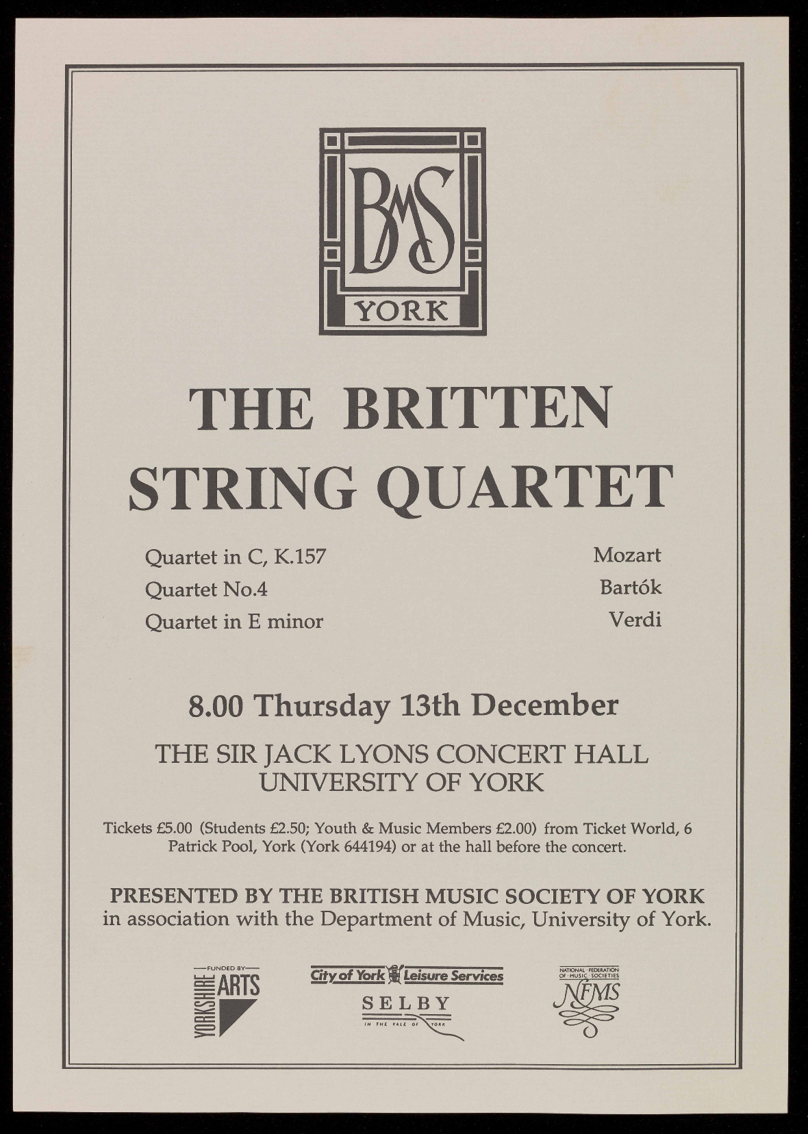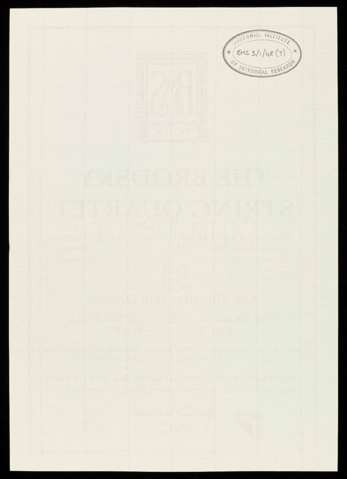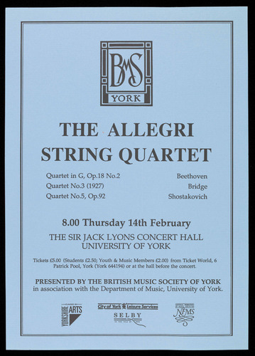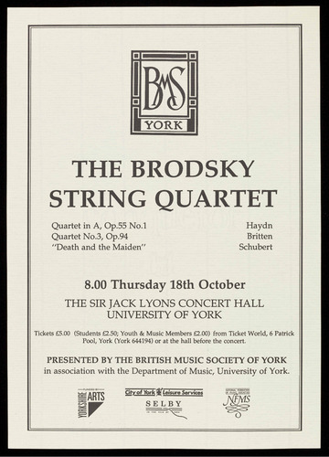 PRESENTED BY THE BRITISH MUSIC SOCIETY OF YORK