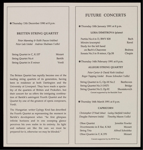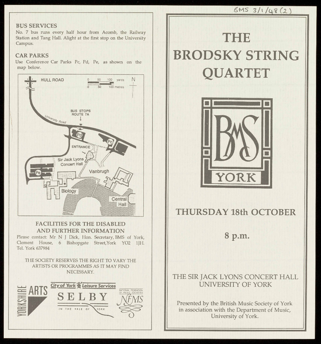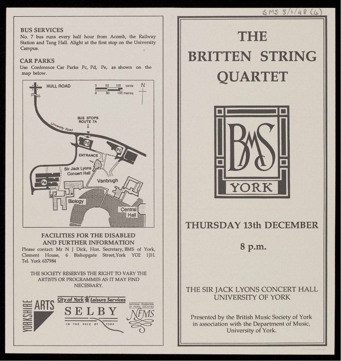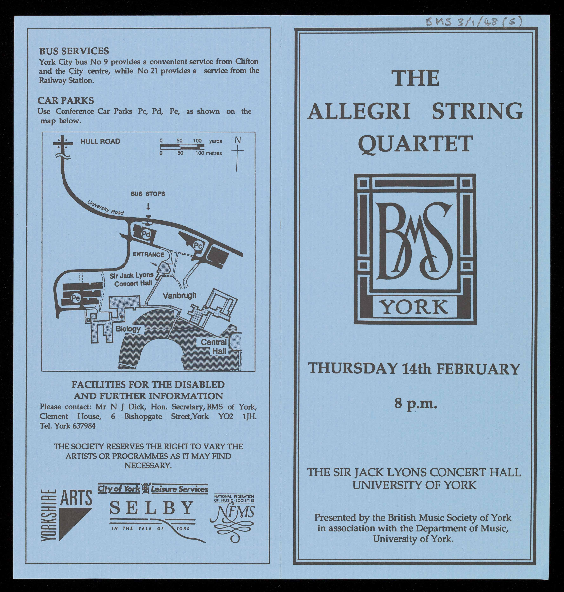 PRESENTED BY THE BRITISH MUSIC SOCIETY OF YORK